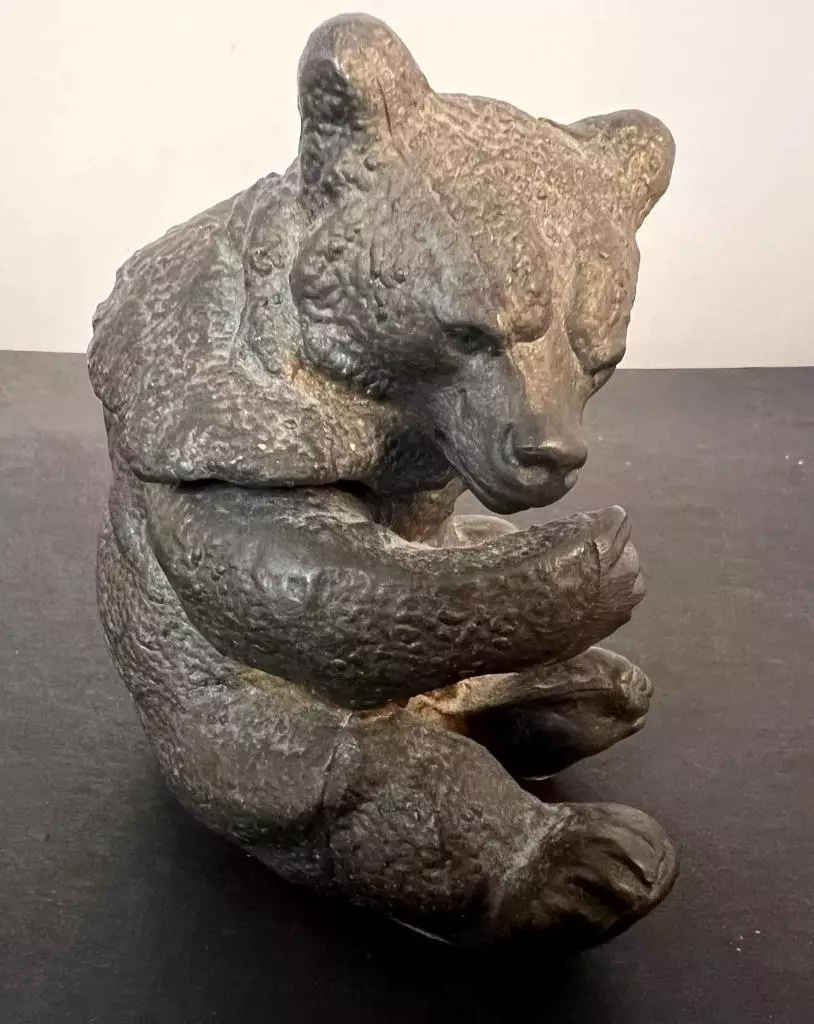 - Detailed Sculpting: The bear is meticulously sculpted, capturing the details of its fur, facial features, and paws.