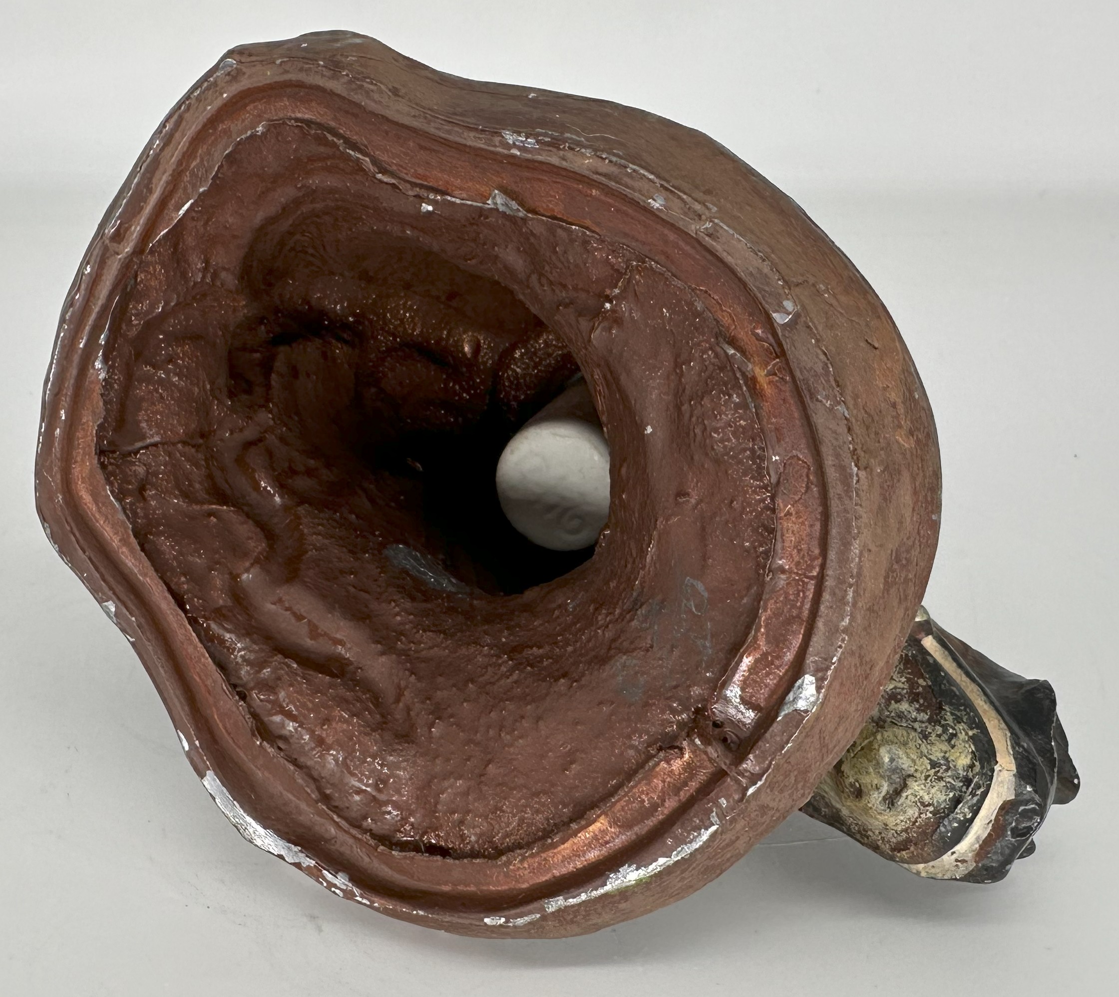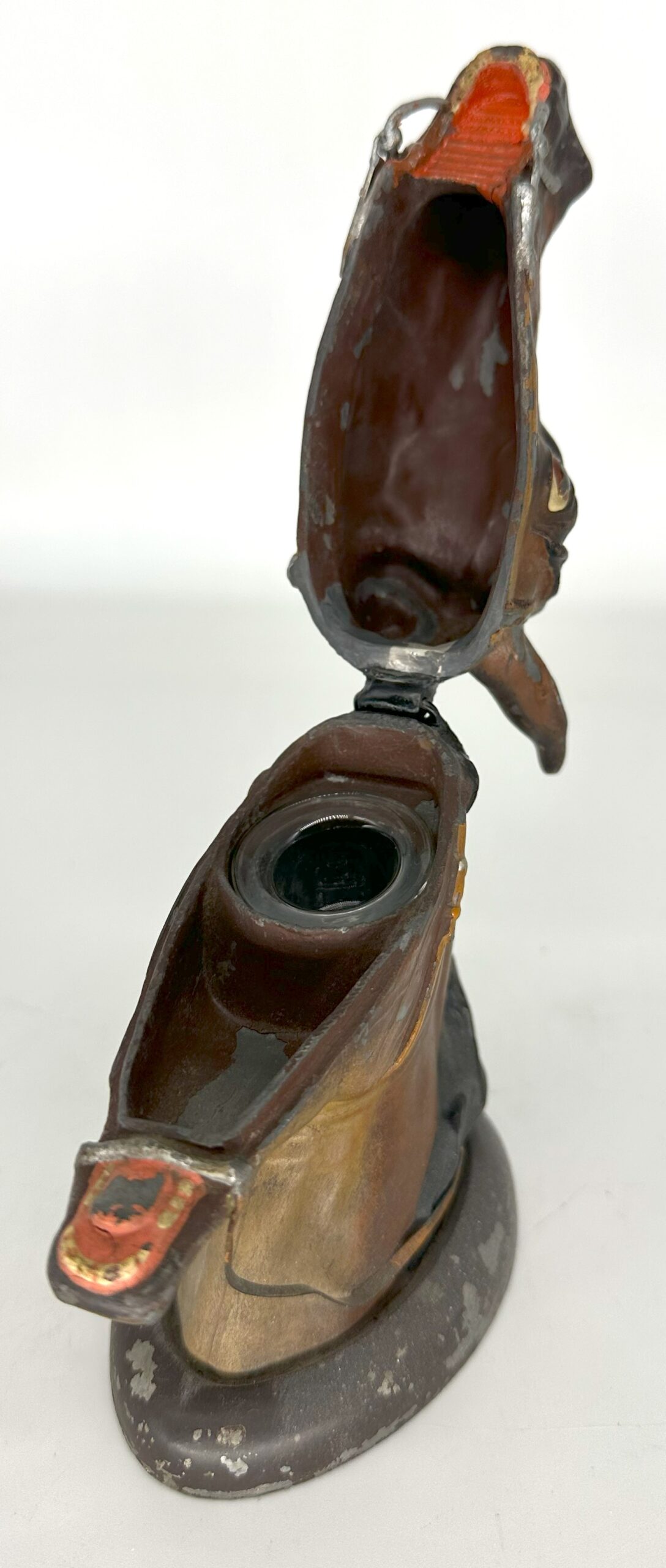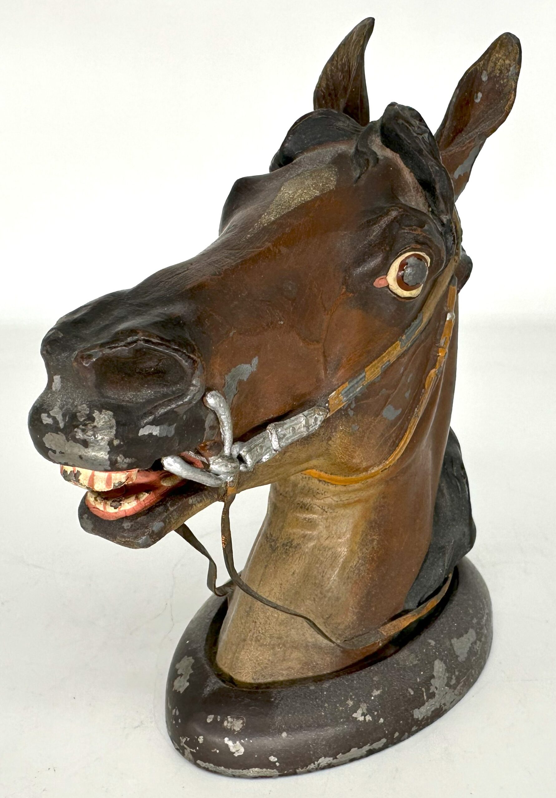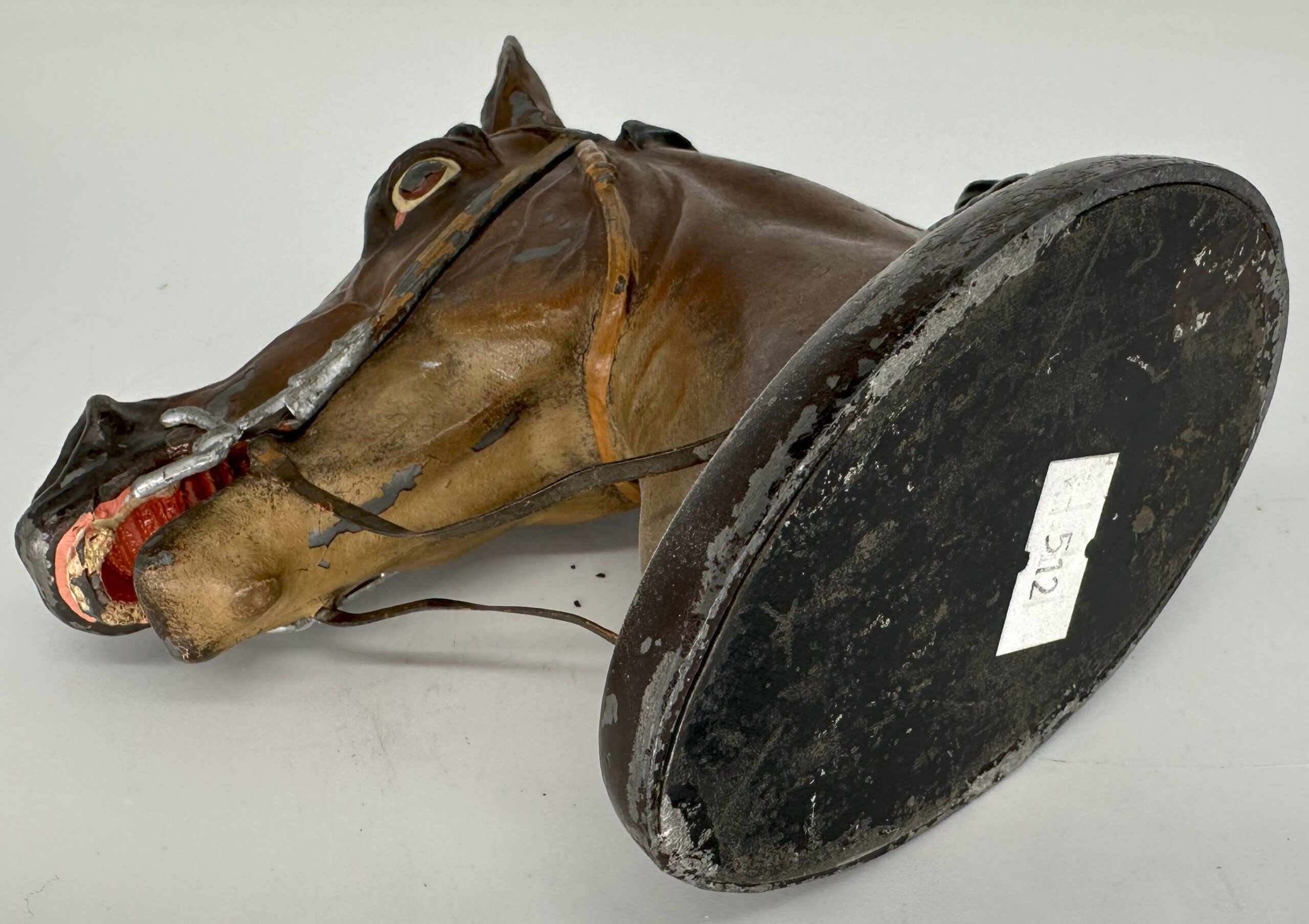 Two similar examples of a figural inkwell shaped like a horse’s head are pictured. Example #1 is pictured on the left and example #2 is on the right.