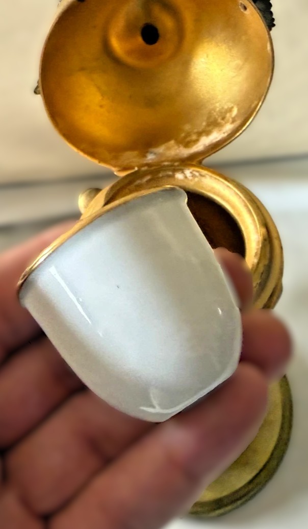 - Functionality: The apple opens to reveal a porcelain inkwell.