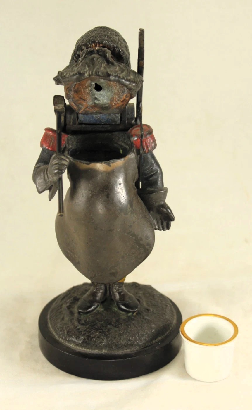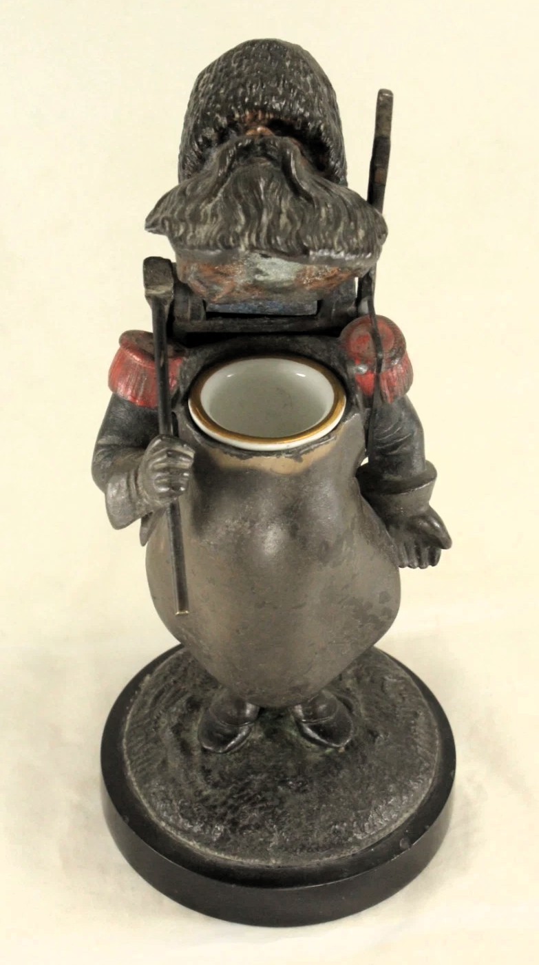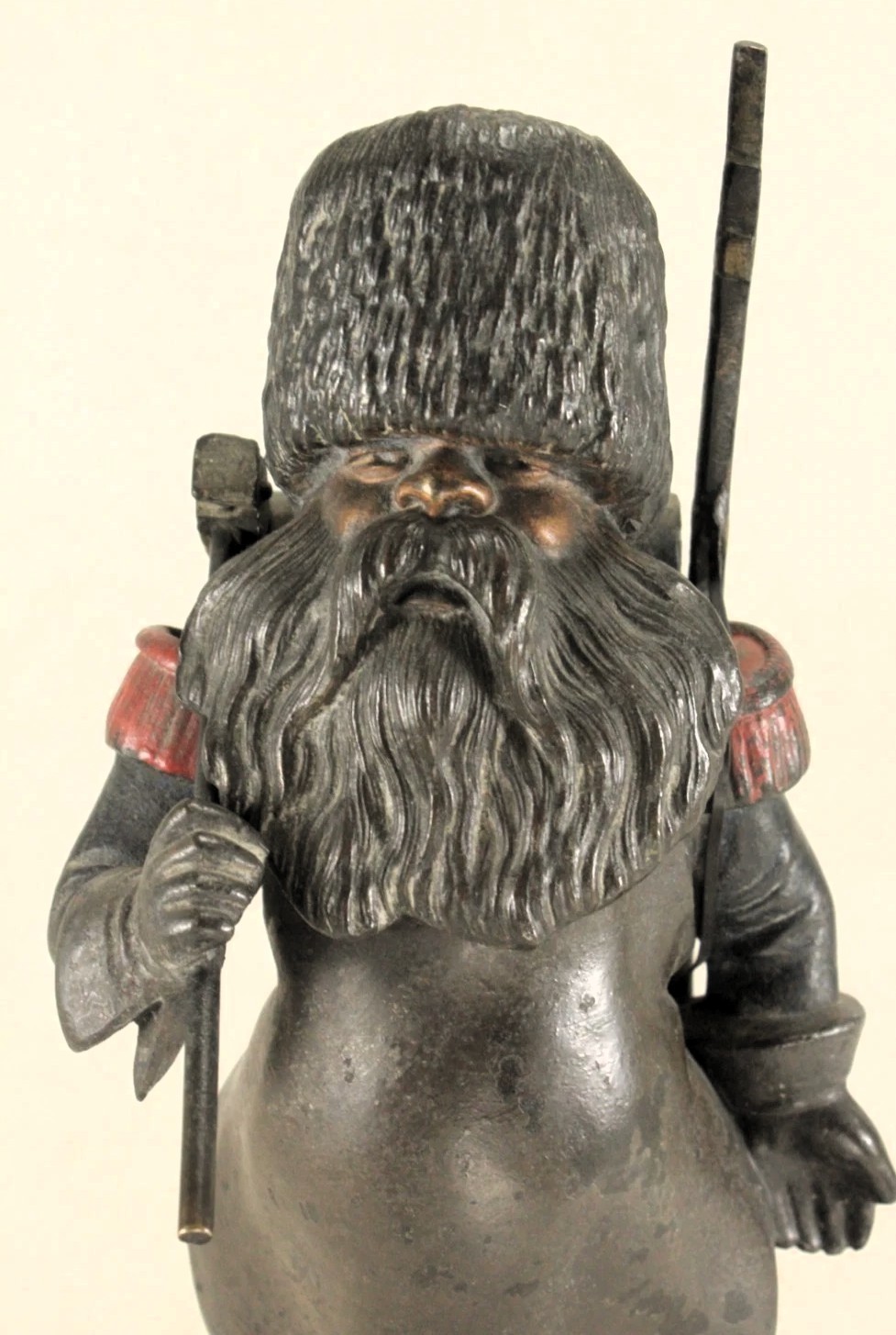 - Figure Material: The figure is made of cast iron or steel type metal. Cast iron was the most common material for such intricate, heavy, mass-produced figures in the 19th century, especially in Germany and Russia.