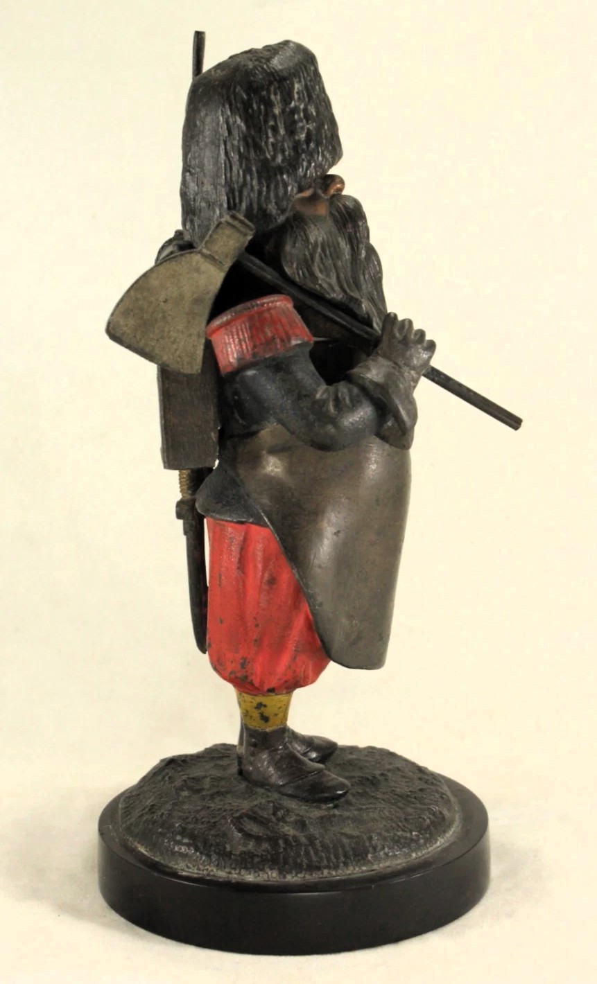 - It is possible, but more likely German or Austrian. While the subject is clearly Russian (a Cossack or Imperial Guard), many 19th-century foundries in Germany (especially those known for detailed metal castings like the foundries in Berlin and the Black Forest region) produced historical and military figures for the international market, including Russian themes.