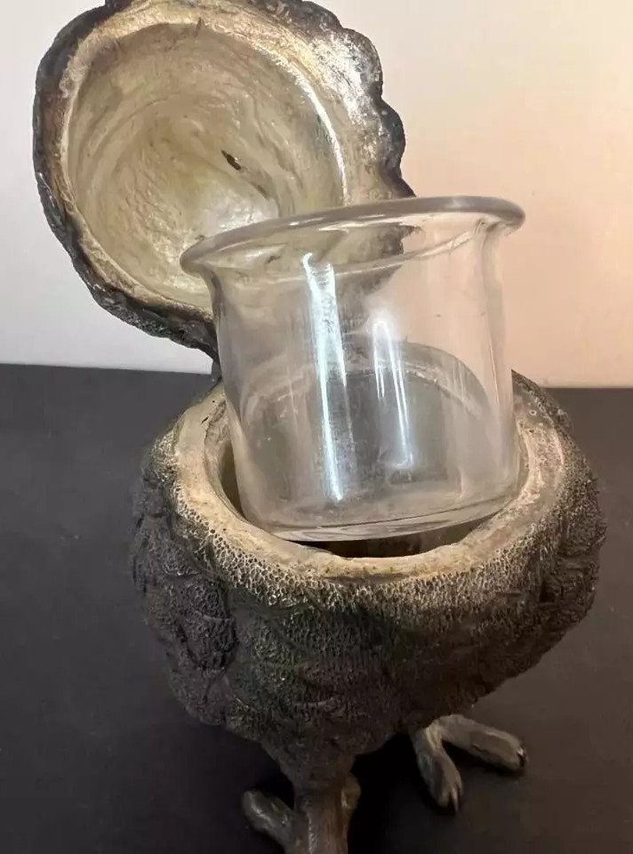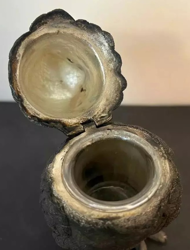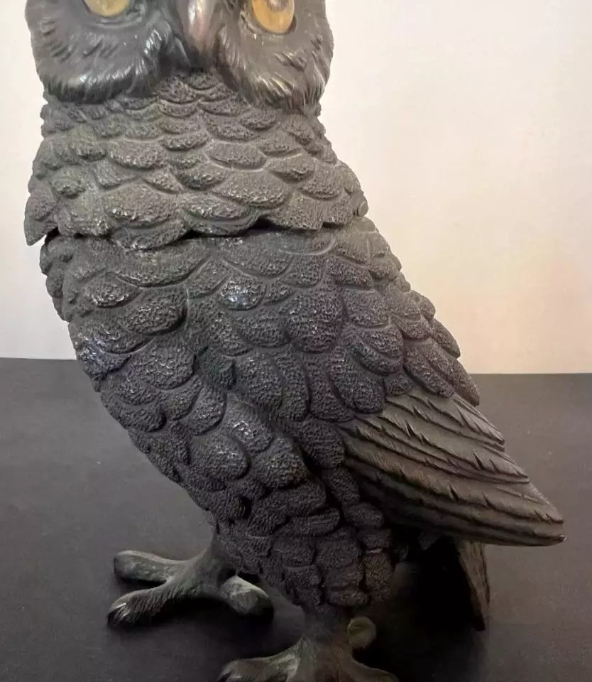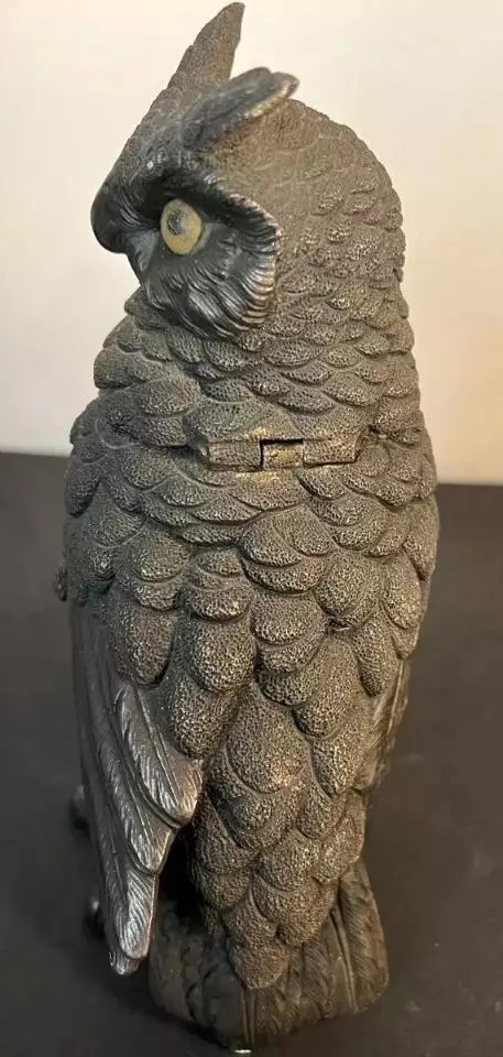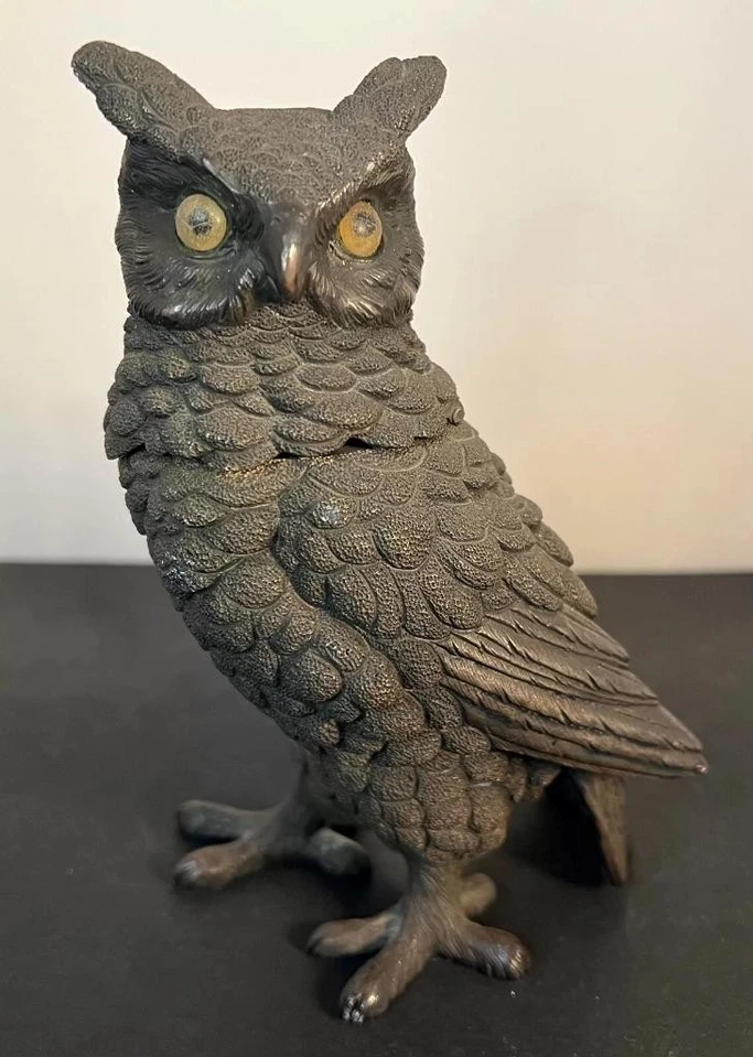 - Figural Owl: The inkwell is shaped as a standing owl, realistically sculpted with attention to detail.
