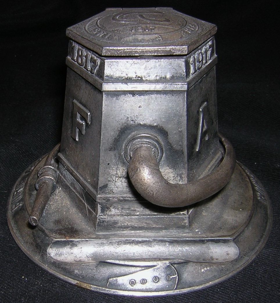 For another example of this inkwell, see: Centennial of the ‘Fire Association of Philadelphia’ – 1817-1917 – The Society of Inkwell Collectors (SOIC)