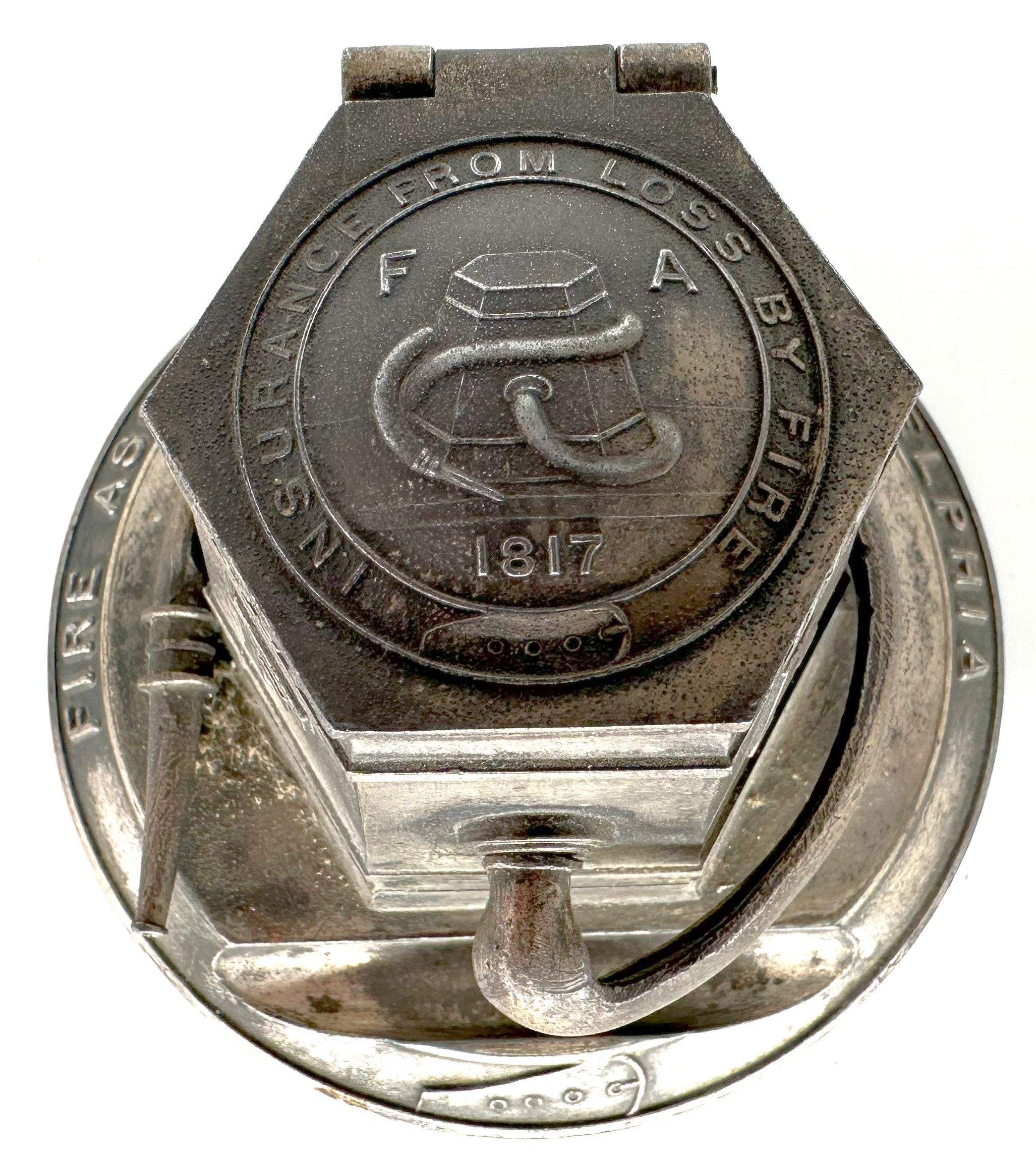The Fire Association of Philadelphia was an insurance company founded in 1817 by a group of eleven volunteer engine companies and five volunteer hose companies. A percentage of the Fire Association’s insurance company’s profits were distributed to the volunteer companies. Like many American insurance companies, this Philadelphia company issued “fire marks” to policyholders to signify that their property was insured against fire damage.