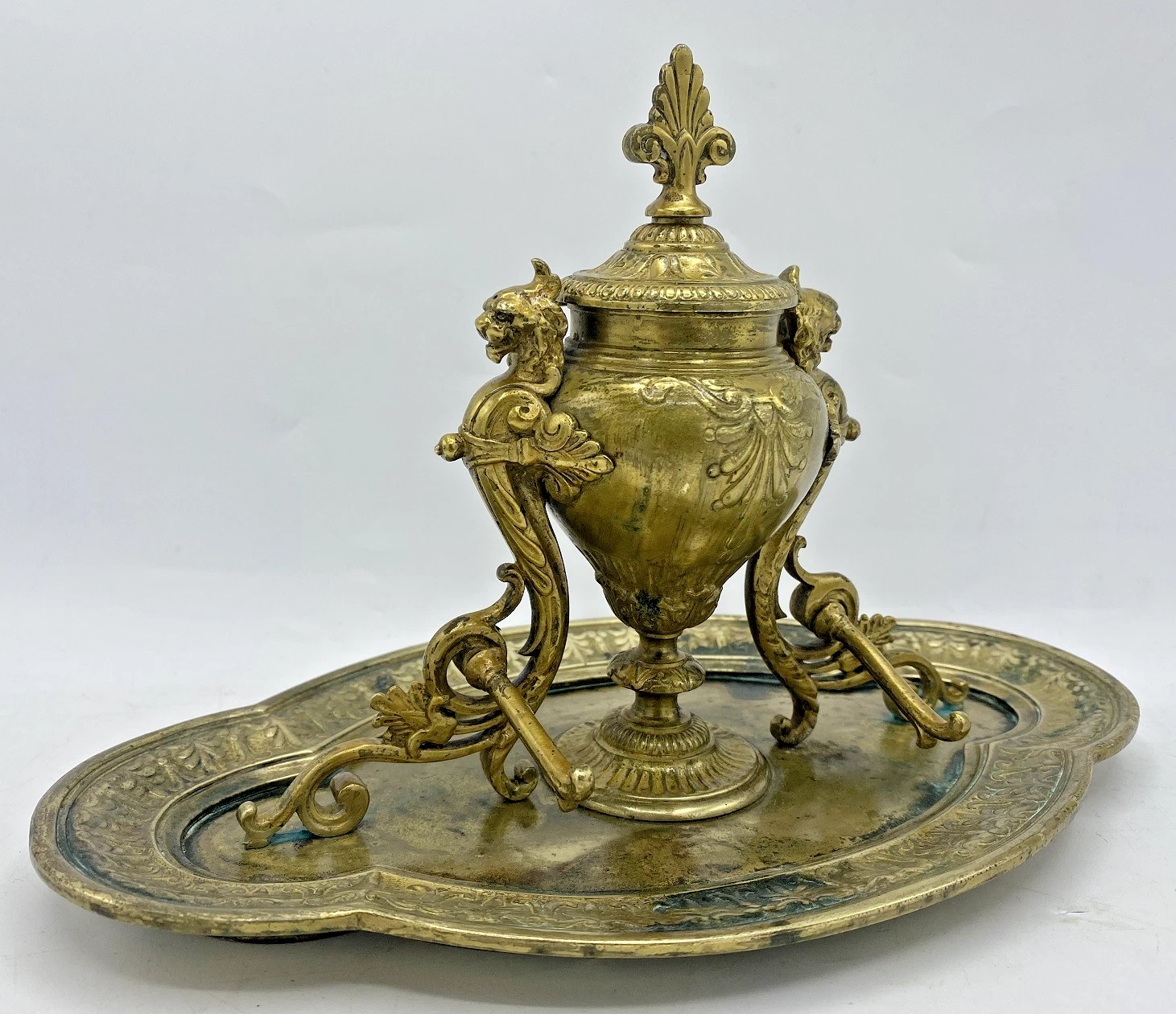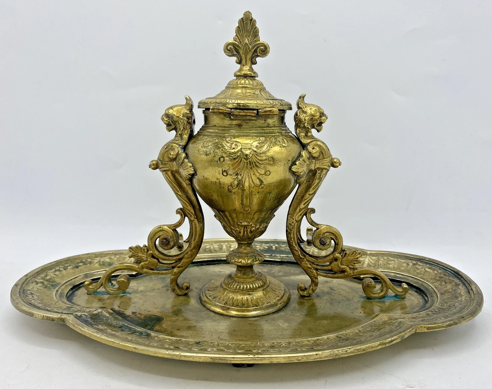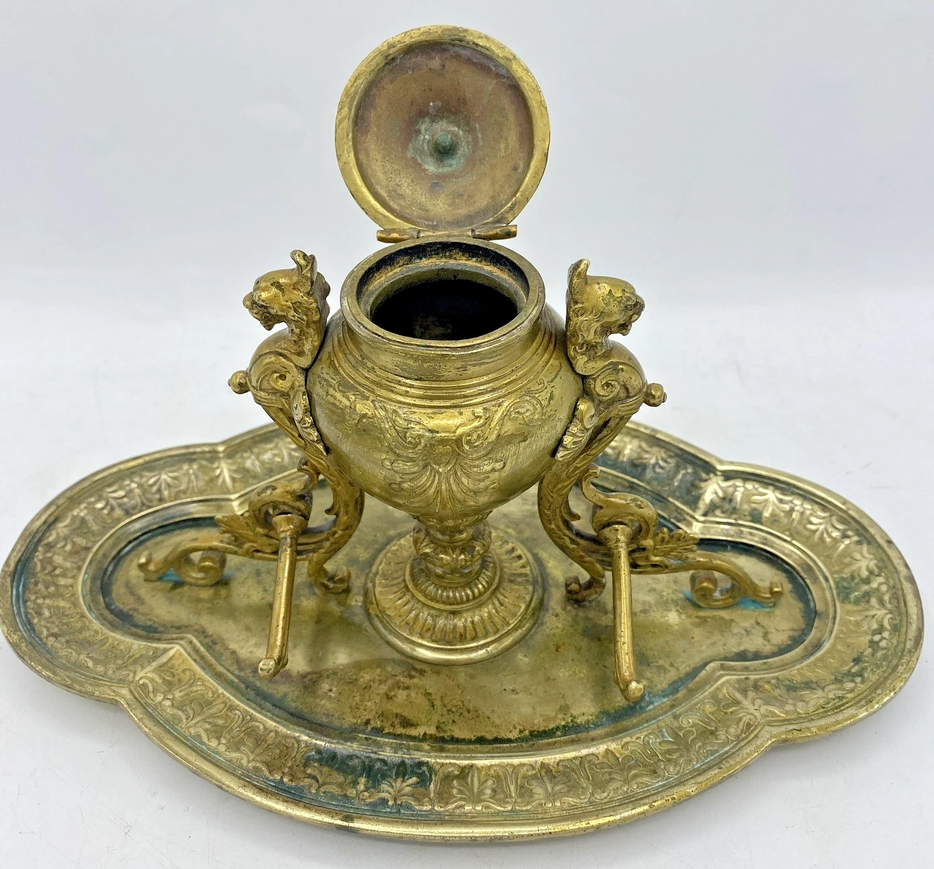 French Brass Inkstand with Griffins