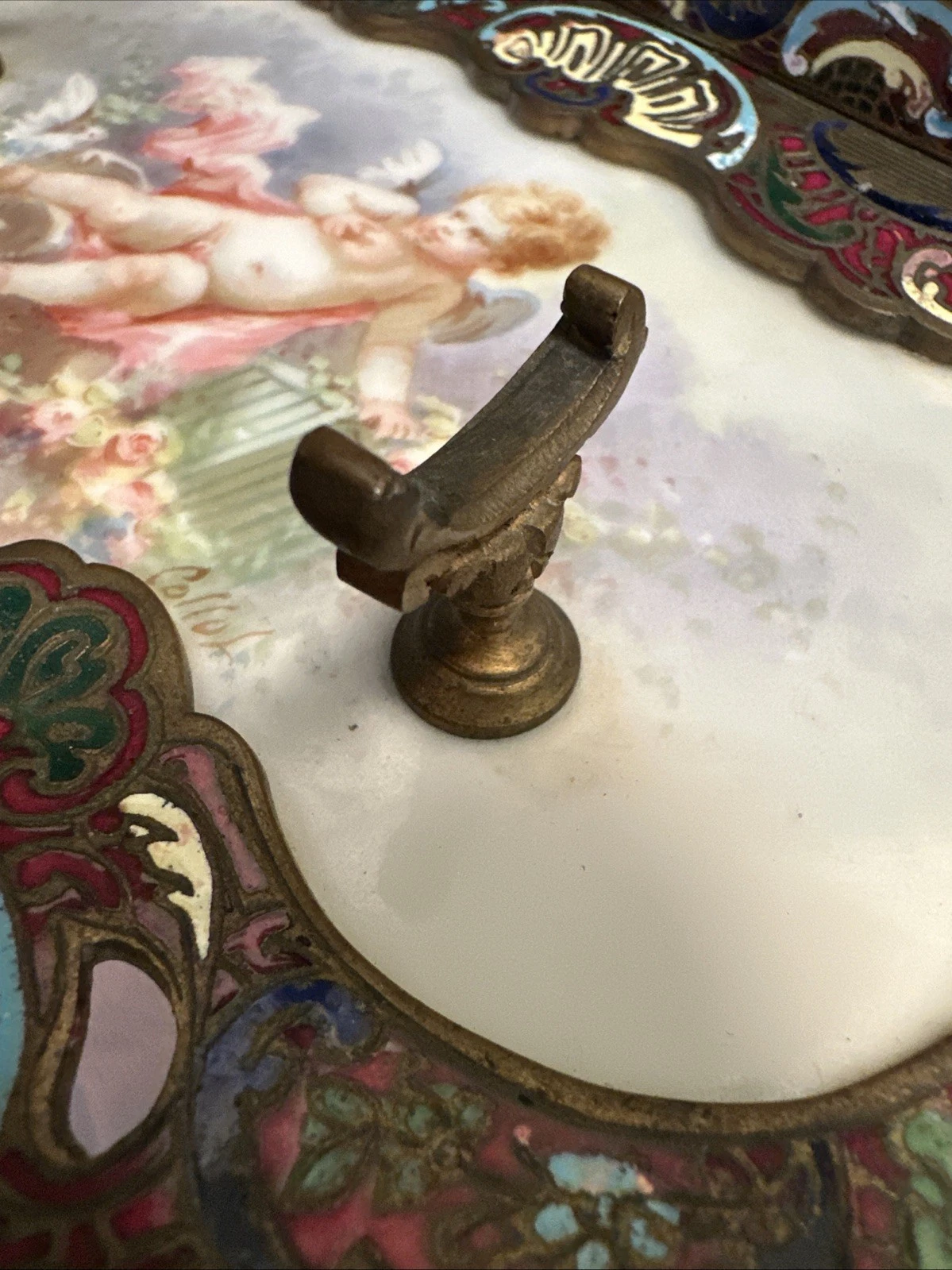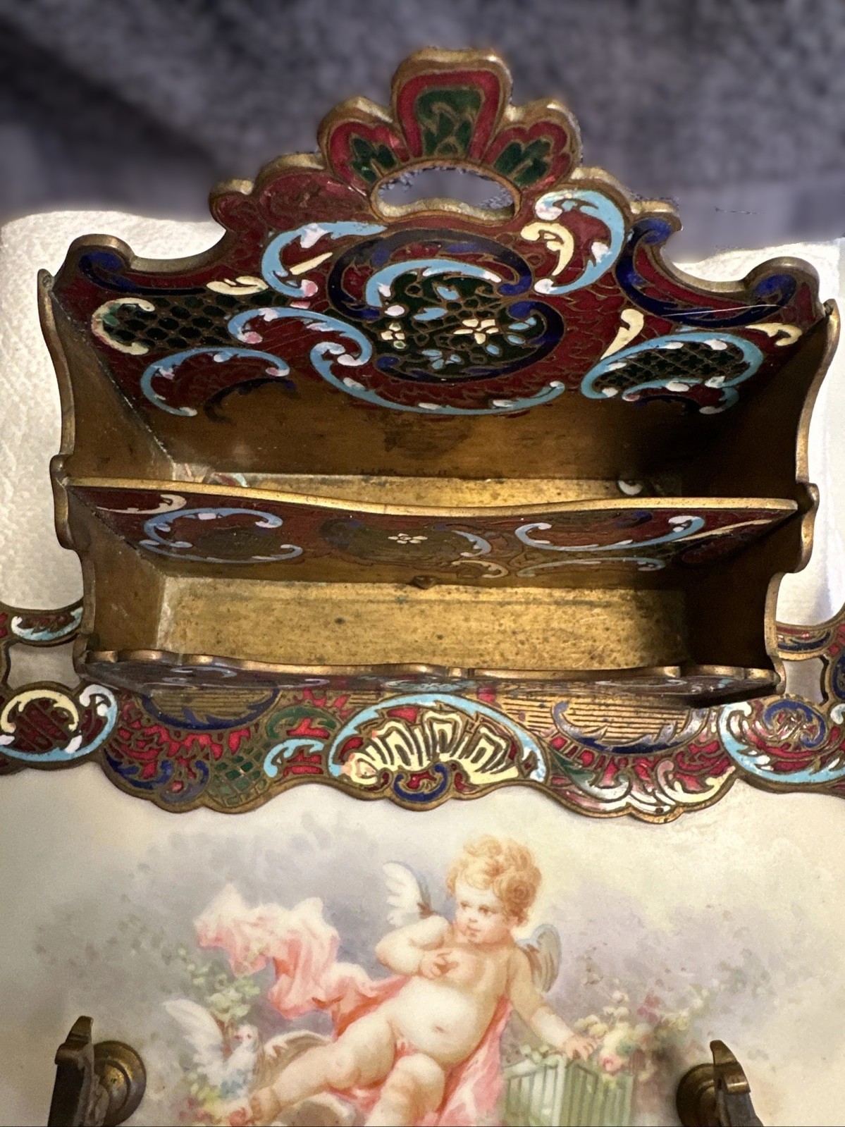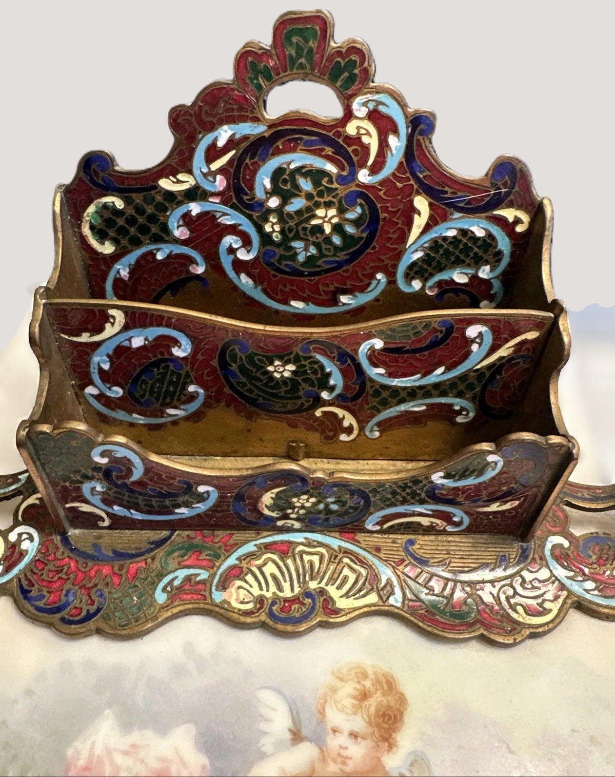 French Champlevé Enamel and Porcelain Stationery Stand (Écritoire)