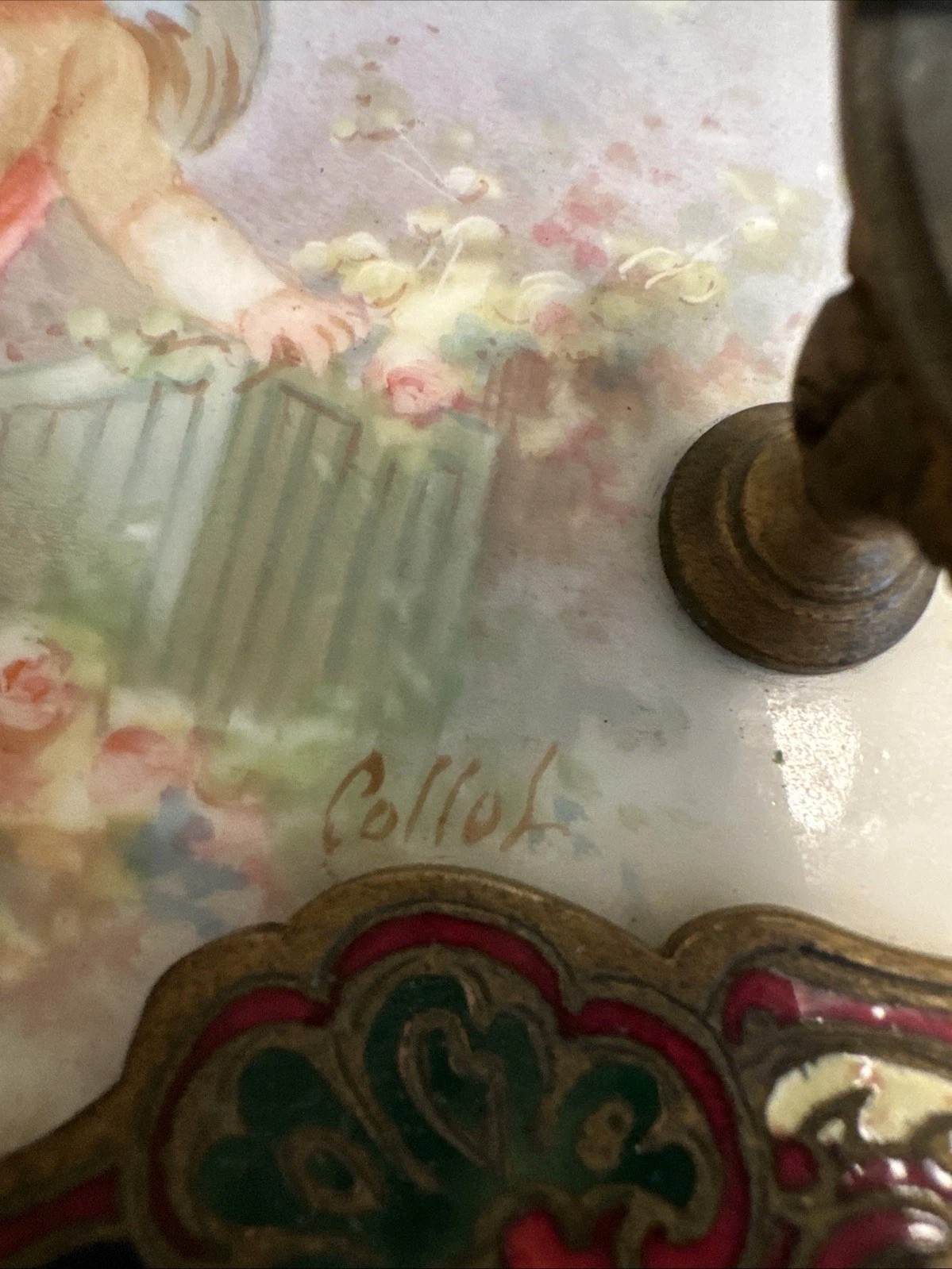 • Artist Note: “Collot” was a known French porcelain painter active in the late 19th century. His signature is frequently found on high-quality Sèvres-style porcelain boxes and desk accessories featuring romantic, Rococo-style scenes.