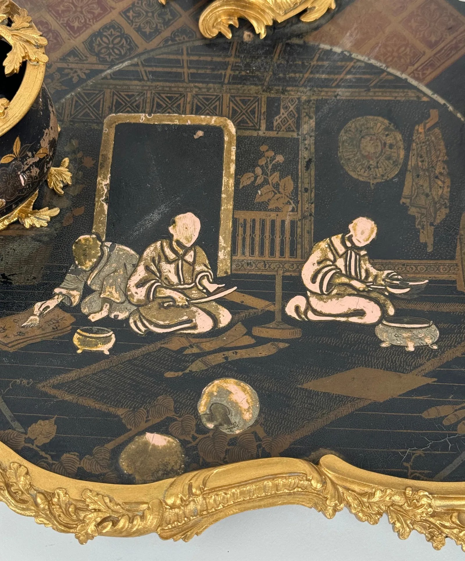 The mark “Millet à Paris” indicates it was made by the renowned French furniture maker Maison Millet, known for their luxurious and detailed craftsmanship. This piece is a beautiful blend of European and East Asian artistic traditions.