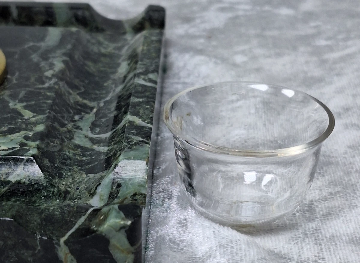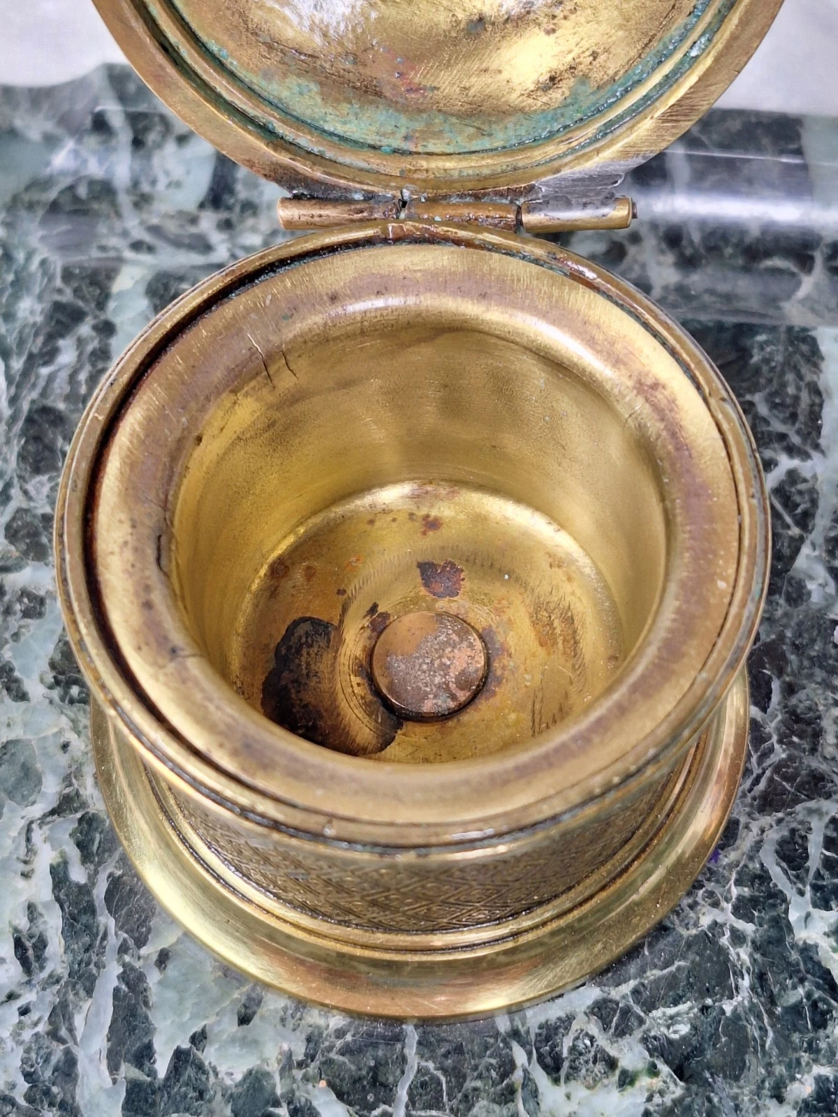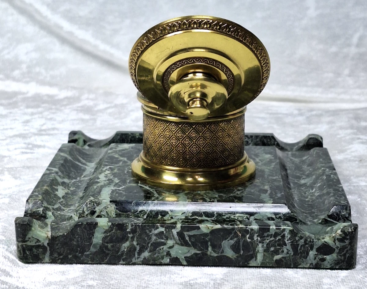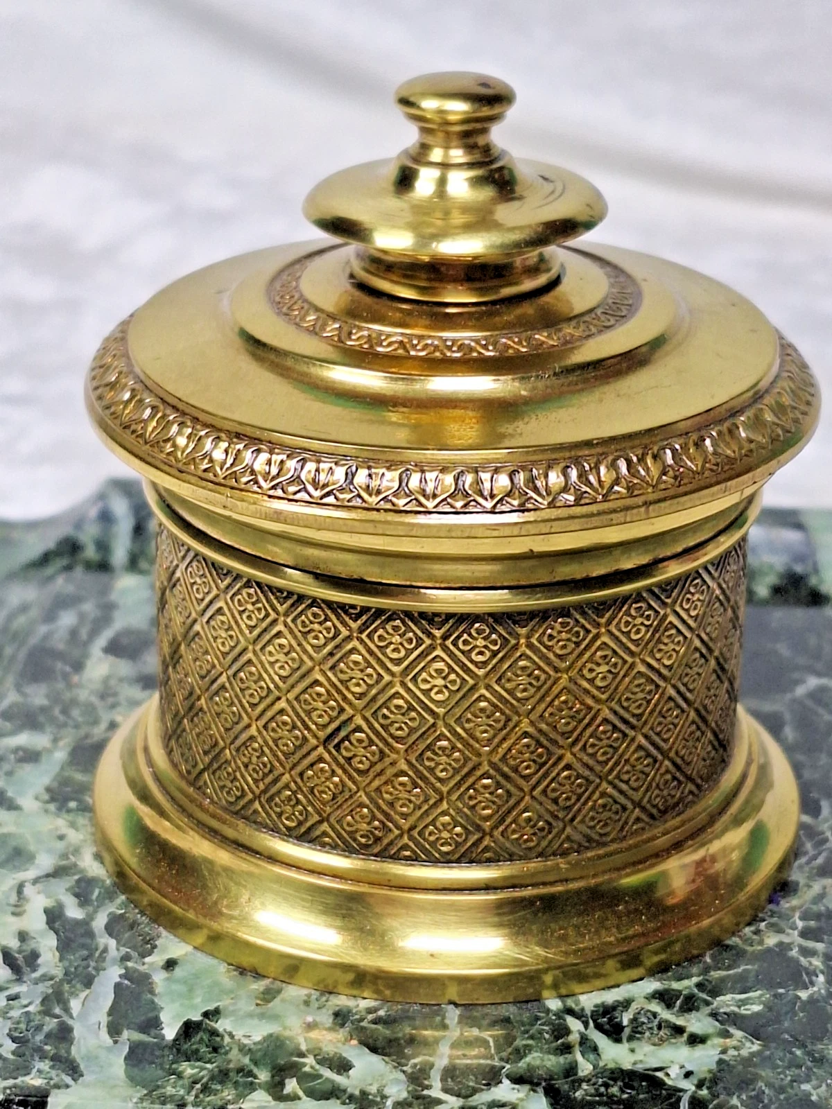 - Structure: The central brass inkwell is set into the marble block. The pen channels on all four sides ensure the inkstand is fully accessible and visually symmetrical from every angle.