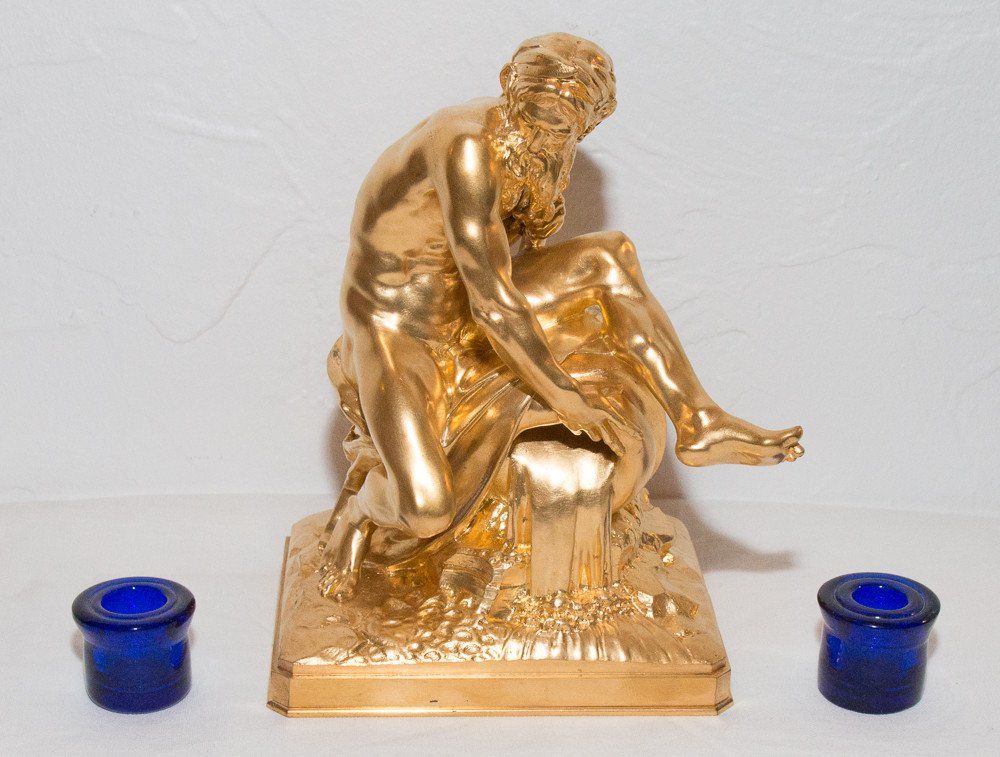 The central figure is a reduction of a famous 18th-century sculpture, “Le Fleuve” (The River) by Jean-Jacques Caffieri (1725–1792).