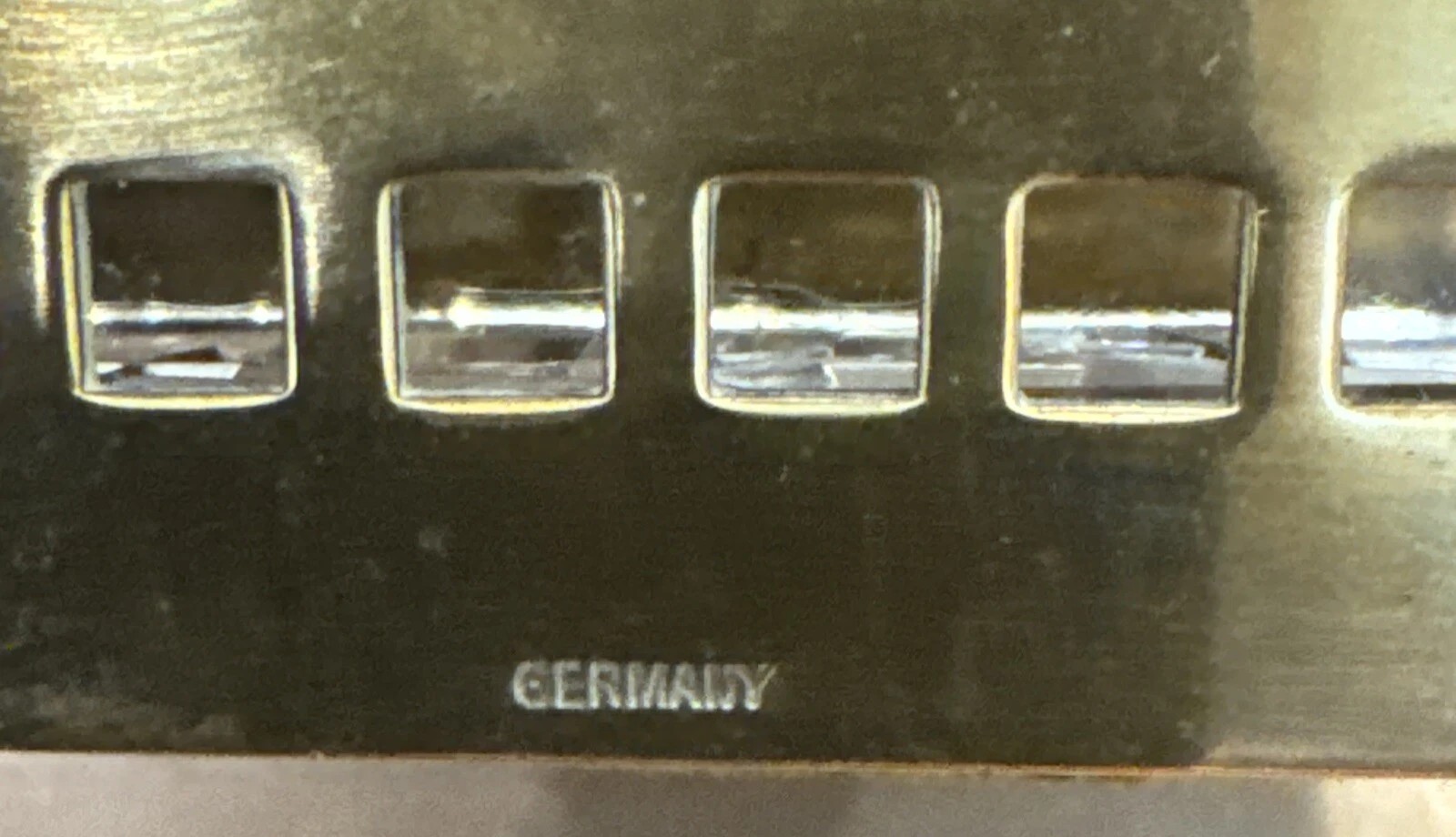 2. “Germany” Mark: The requirement for items to be marked with their country of origin for export to the US and UK became common after the McKinley Tariff Act of 1890. The simple “Germany” mark places it in the early period of this export requirement, before WWI disrupted global trade.