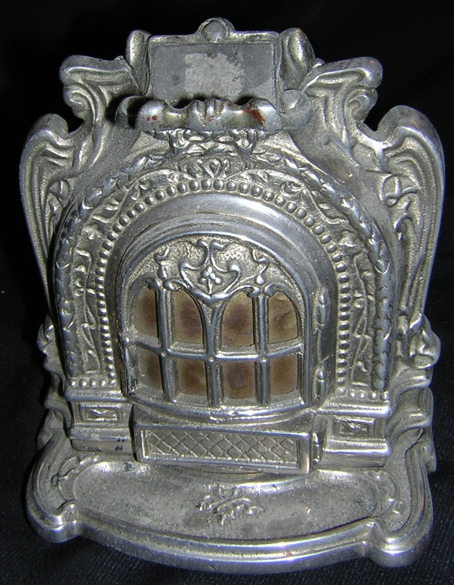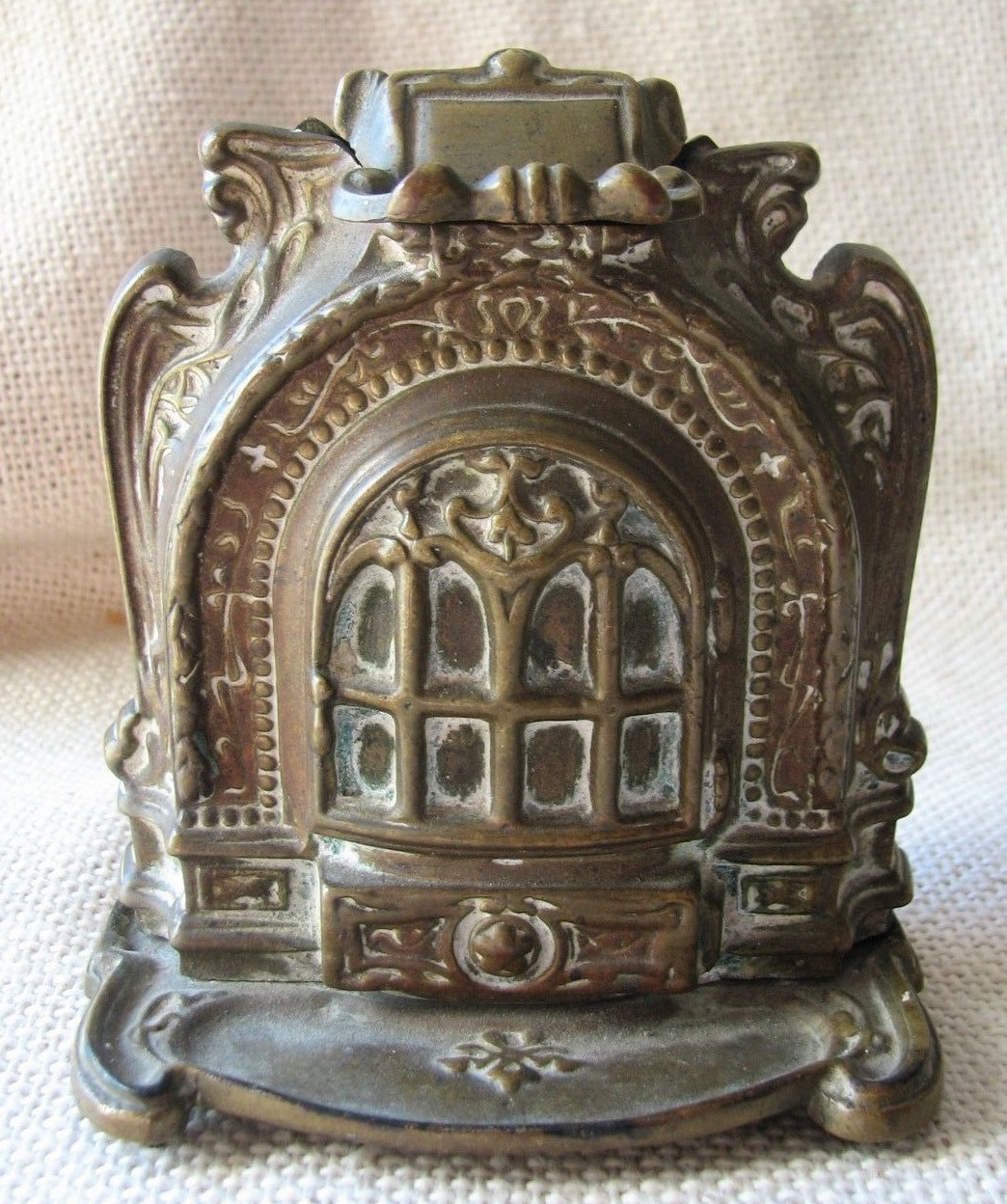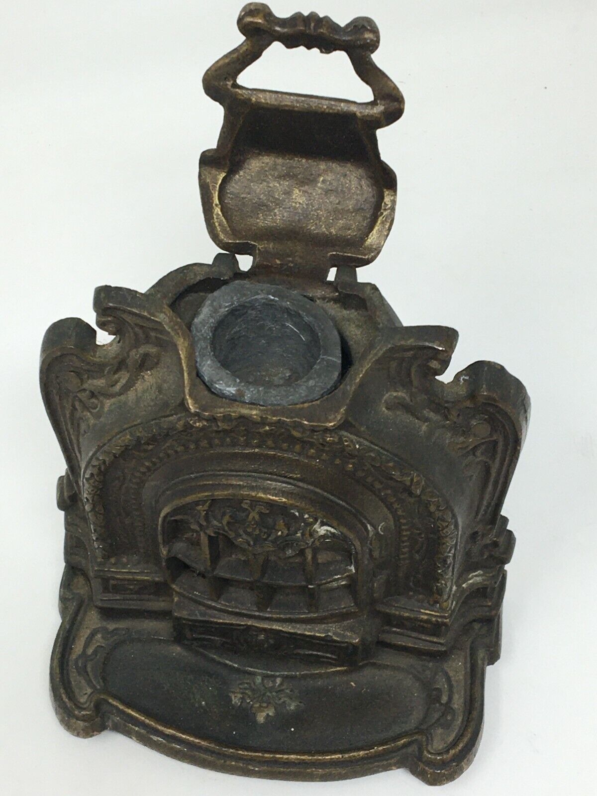 Two examples of inkstands in the form of heating stoves – miniature versions of stoves manufactured by the Godin cast iron foundry – possibly advertising pieces or sales samples.