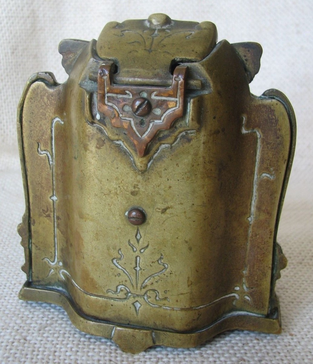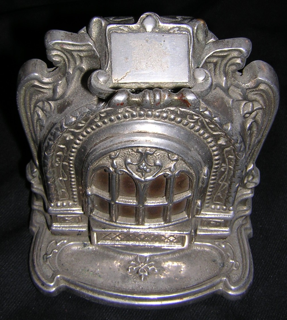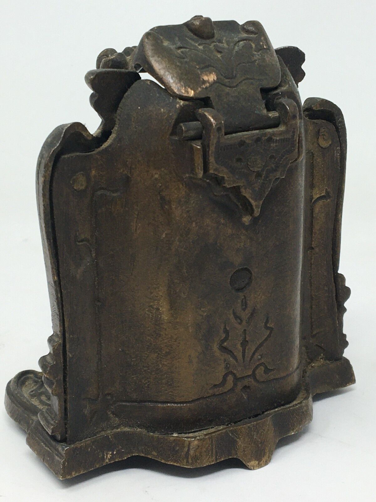 Two examples of inkstands in the form of heating stoves – miniature versions of stoves manufactured by the Godin cast iron foundry – possibly advertising pieces or sales samples.
