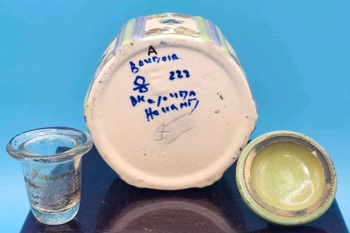 1. Factory Mark: The hand-painted House Mark (the small house or gate symbol with a triangular roof) identifies the manufacturer as Plateelbakkerij Zuid-Holland (PZH).