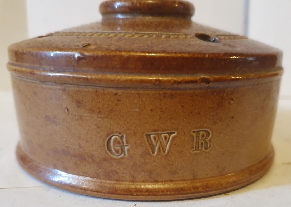 GWR (Great Western Railway) salt glaze stoneware “landmine” inkwell.