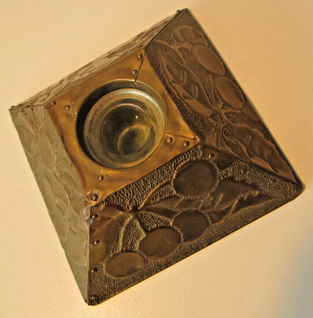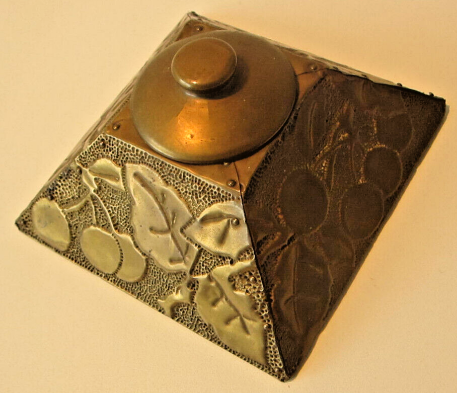 Cross-reference: https://inkwellresearch.com/inkipedia/hammered-brass-over-wood-pyramidal-inkwell/?