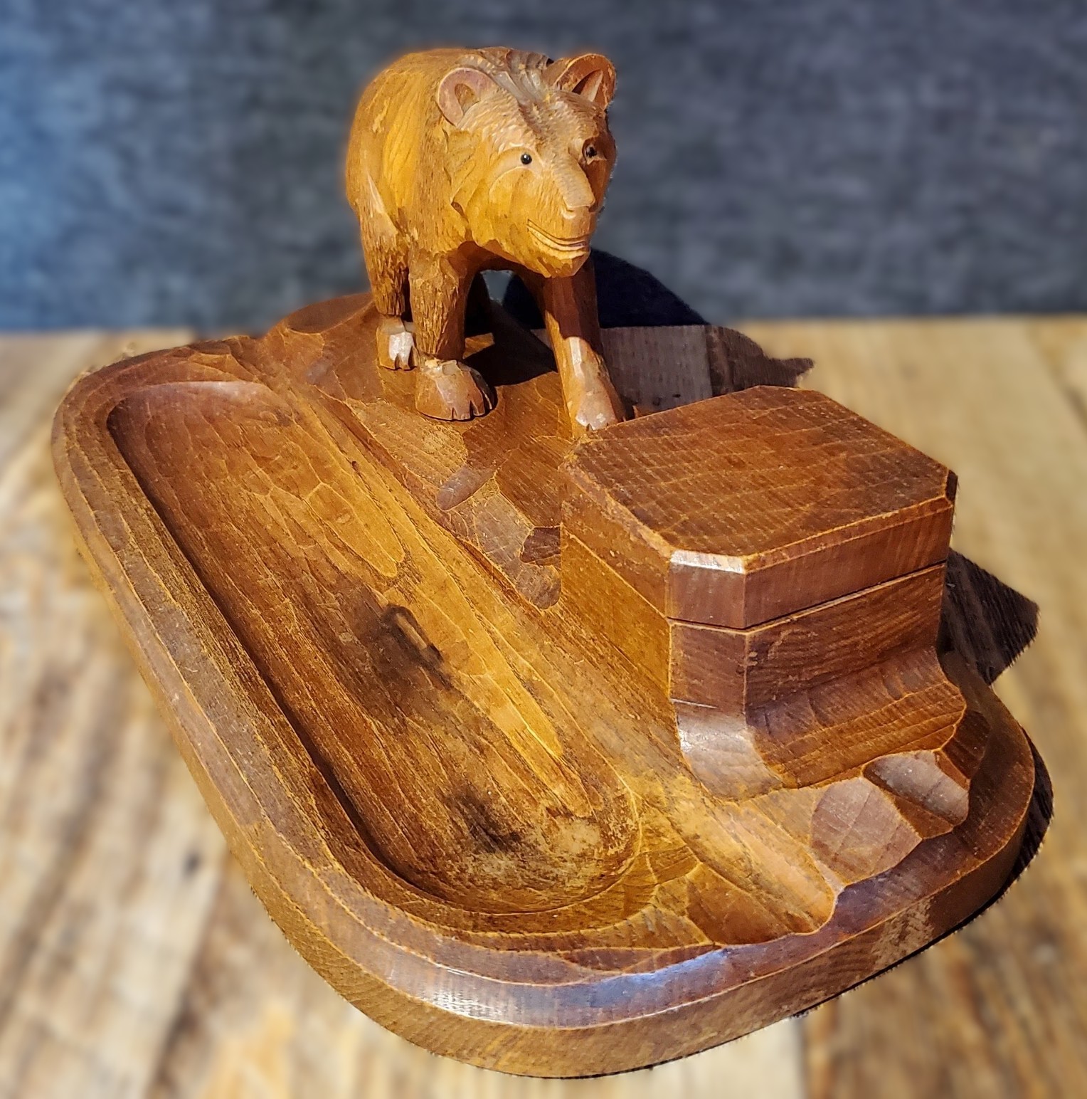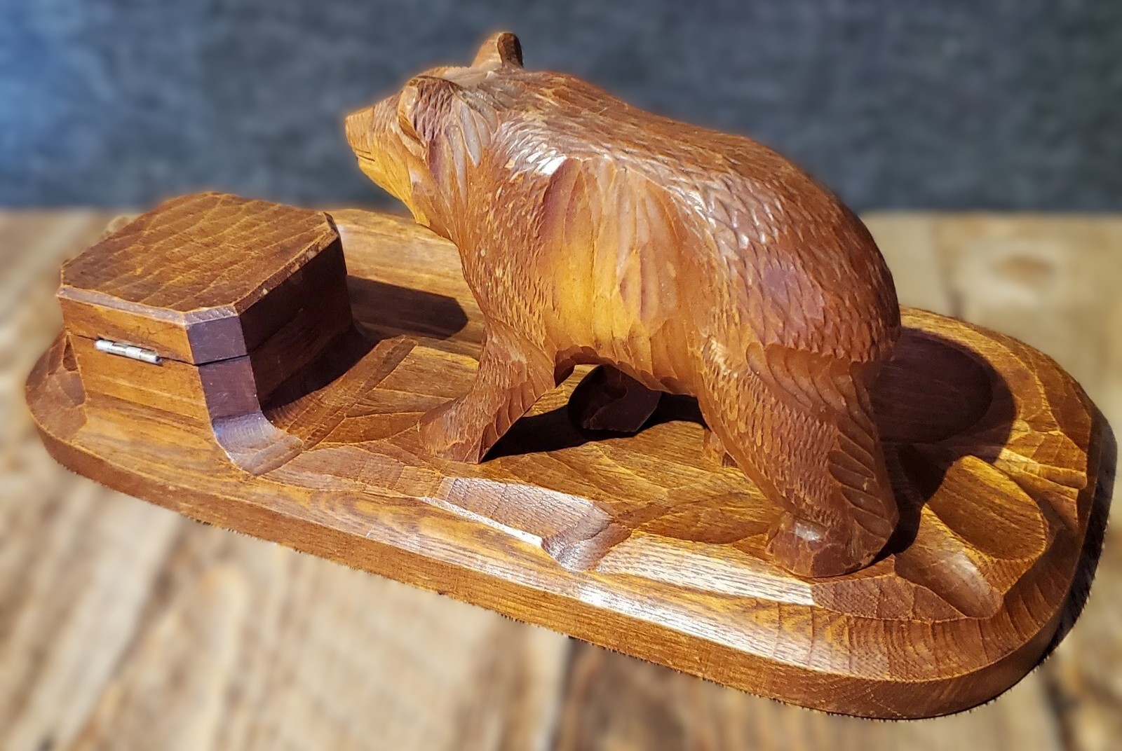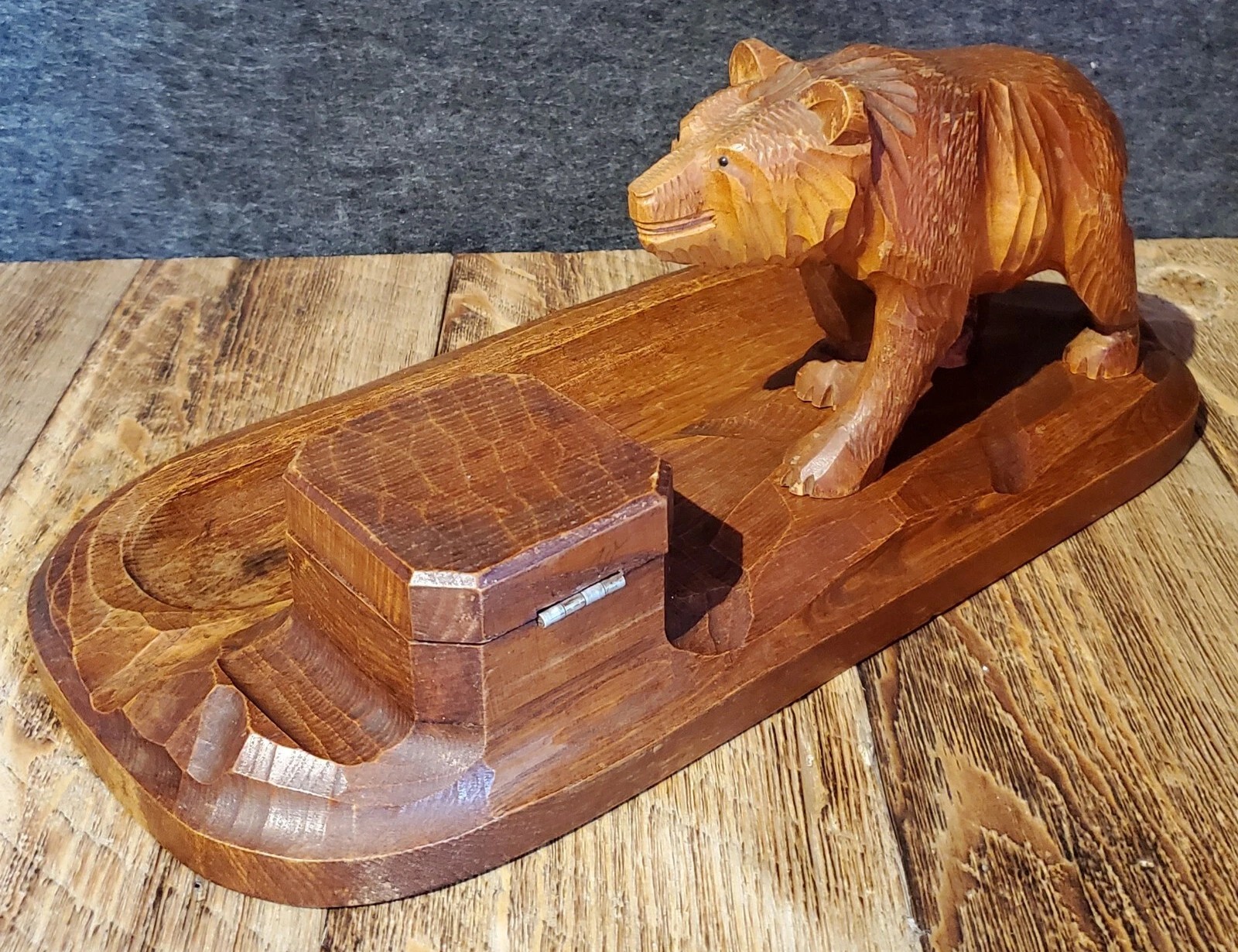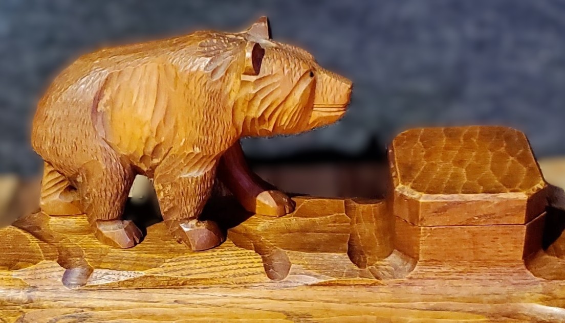 Hand Carved Black Forest Inkstand with a Bear