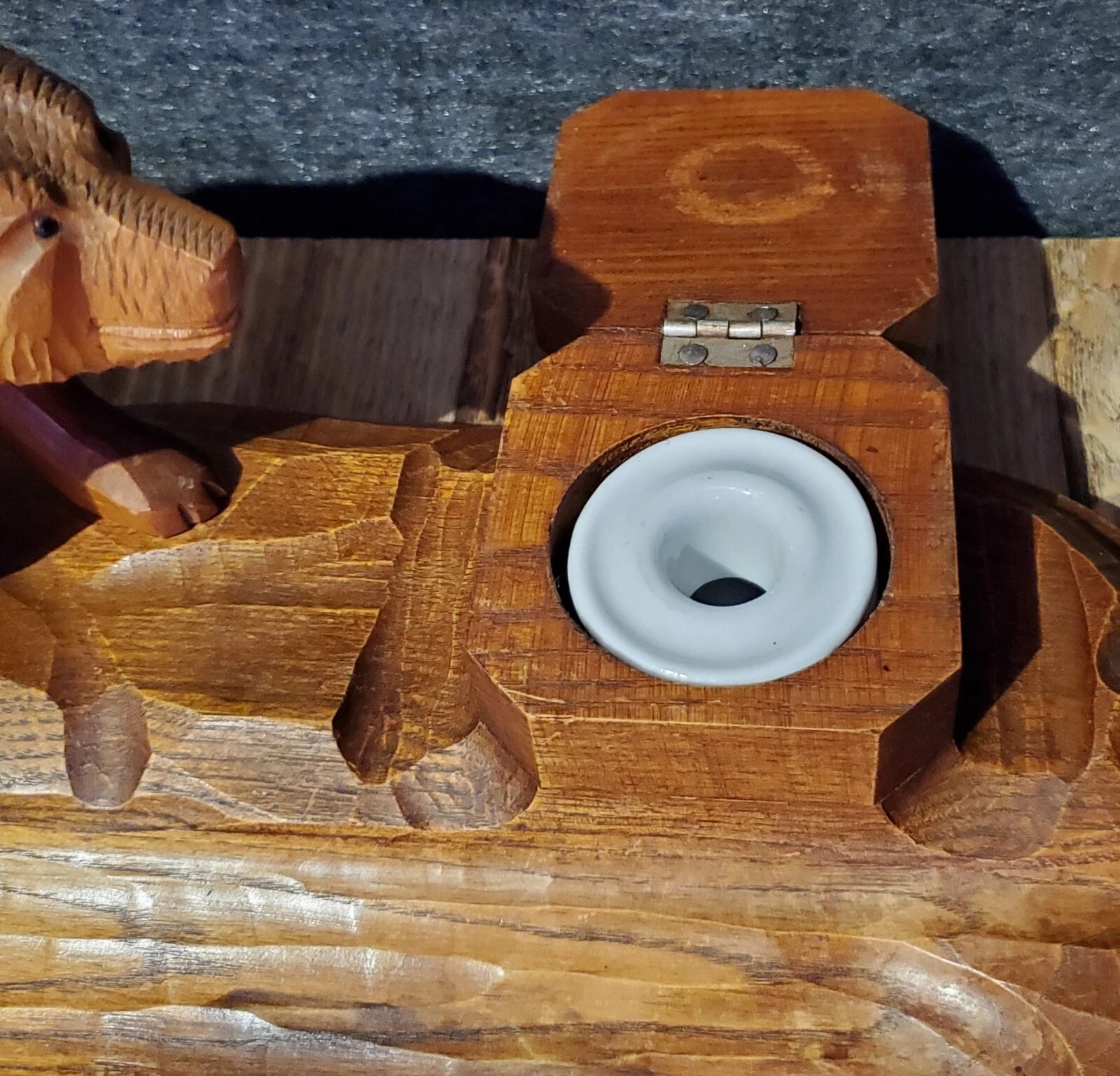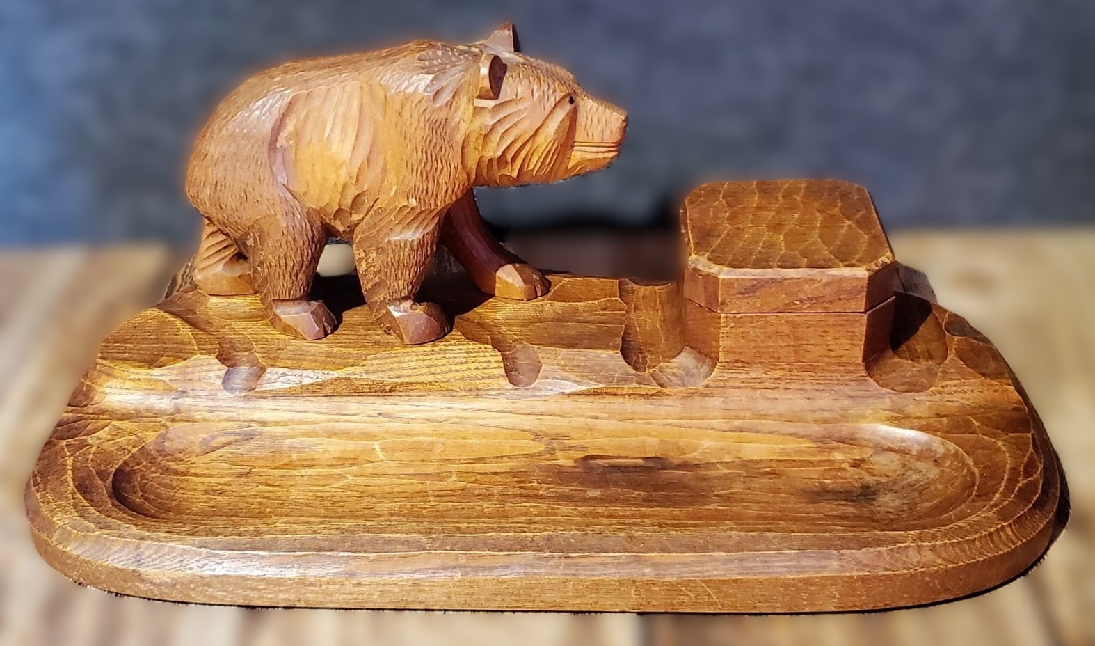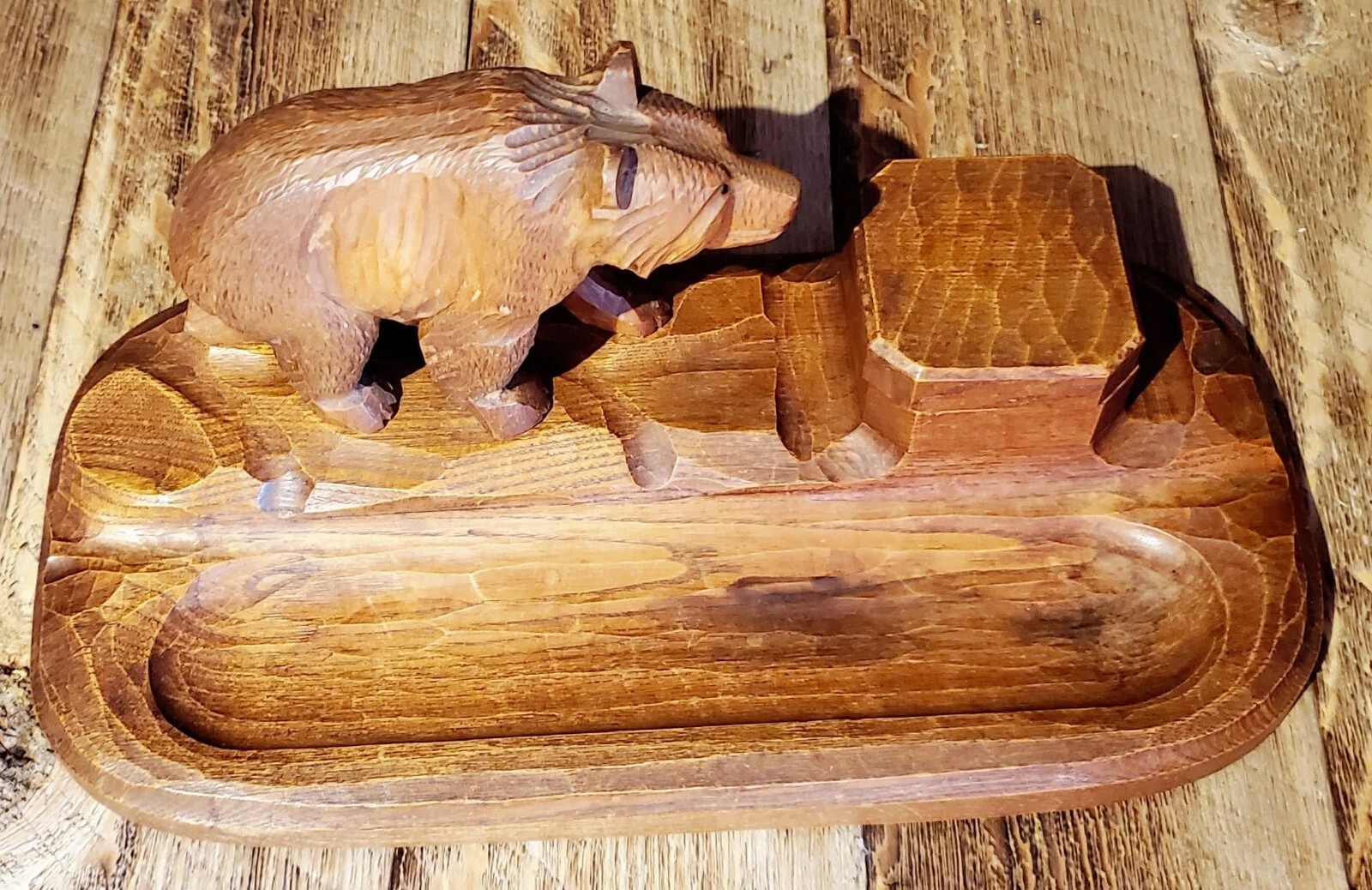 Hand Carved Black Forest Inkstand with a Bear