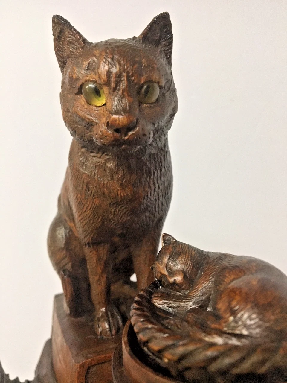 We believe this to be a Swiss carving, falling under the broader umbrella of Black Forest carving (the style was shared across the Alpine regions of Germany and Switzerland). Swiss carvers, particularly from the Brienz region, were renowned for their highly detailed and often sentimental animal subjects.