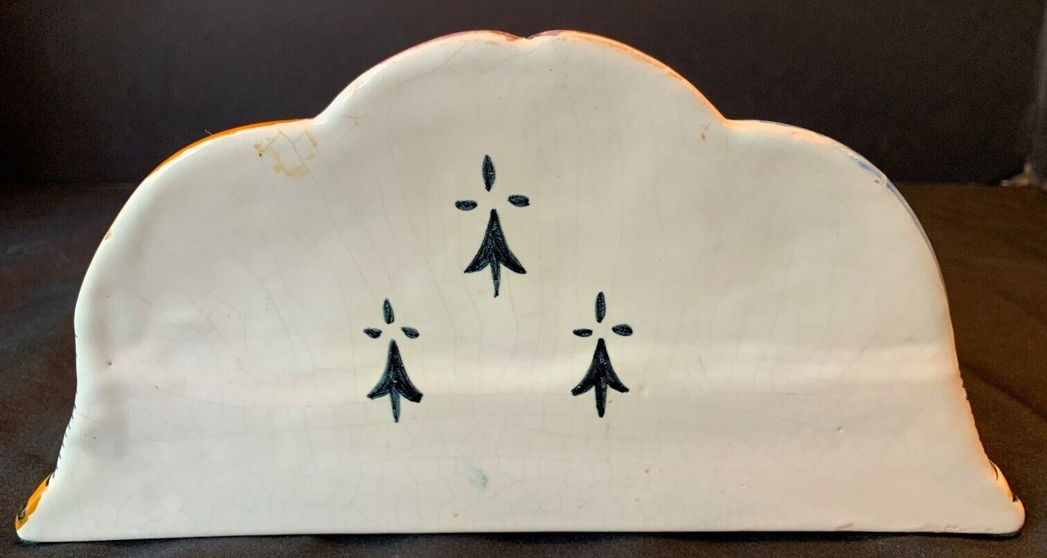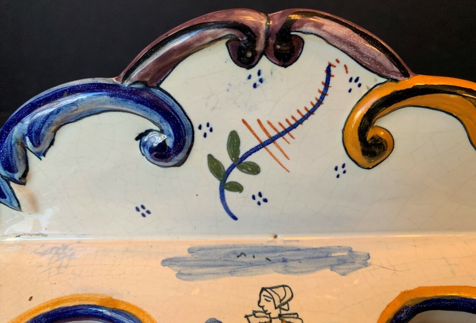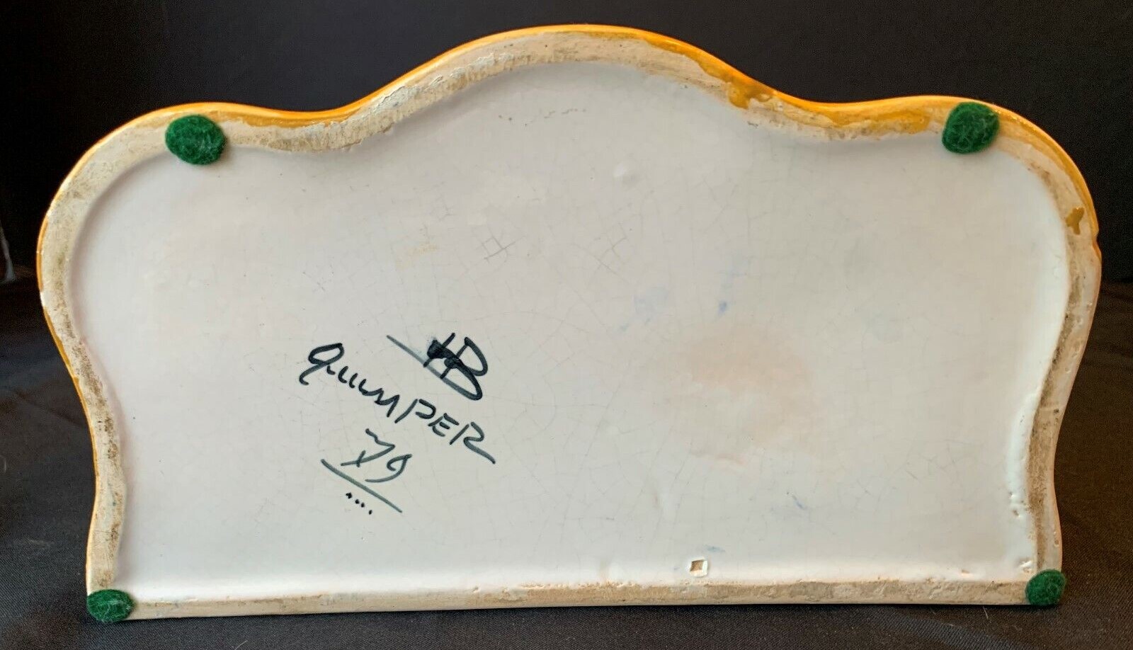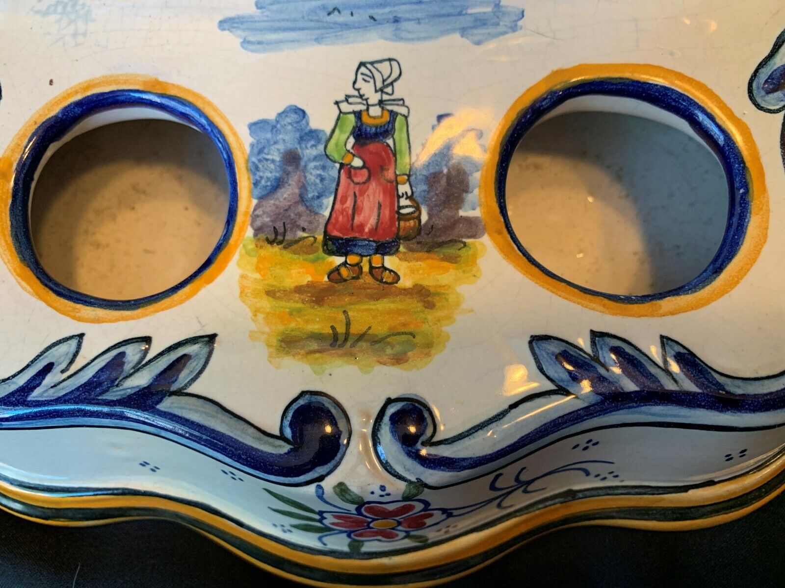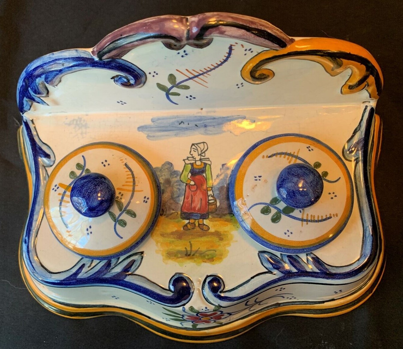 HB Quimper inkwell features a primitively rendered Bretonne with flowers and ermine tails.