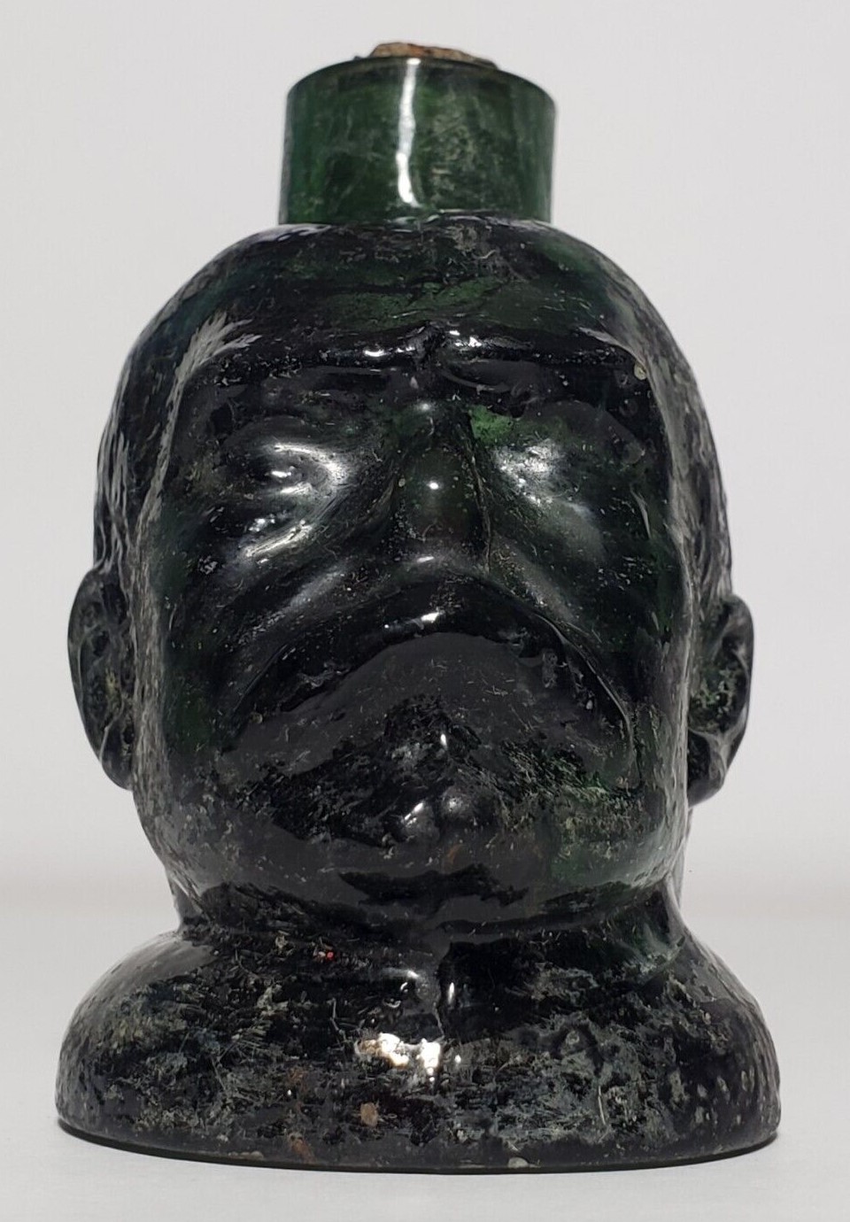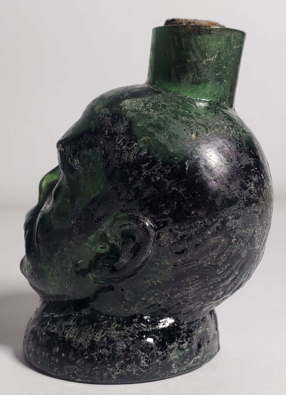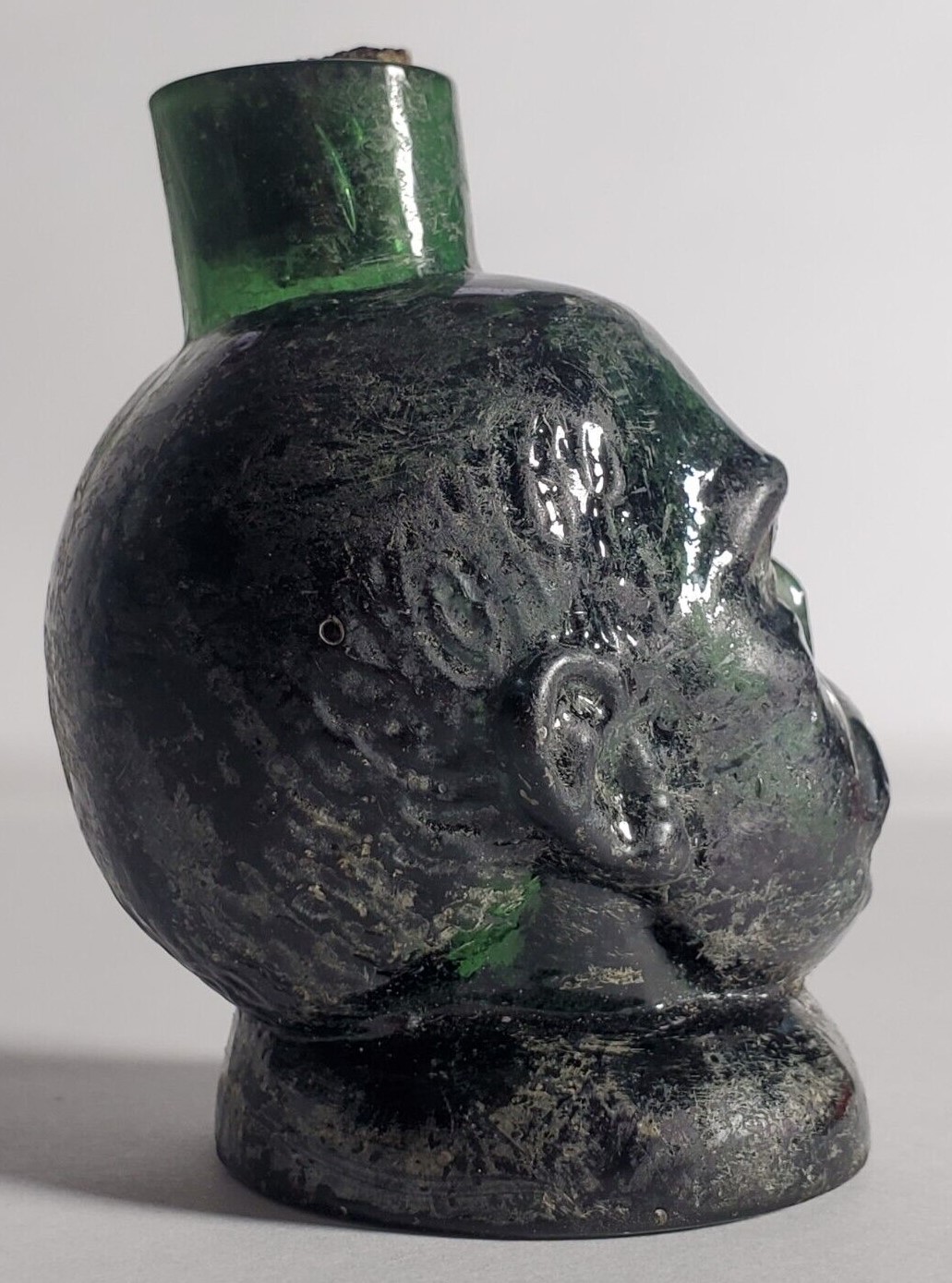 This glass ink bottle in the form of a man’s head was made in Russia.