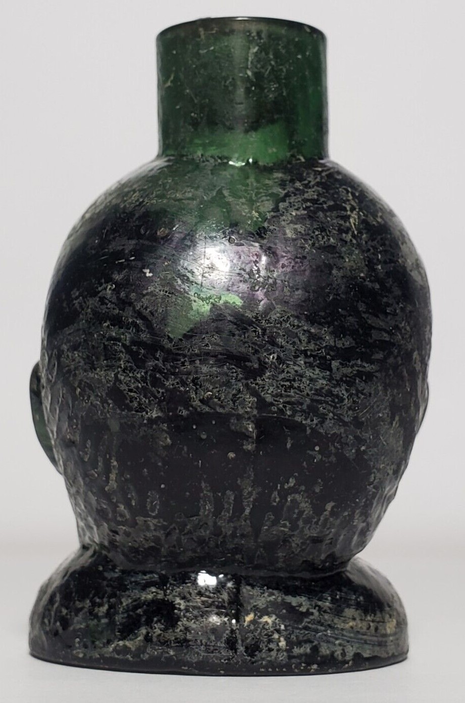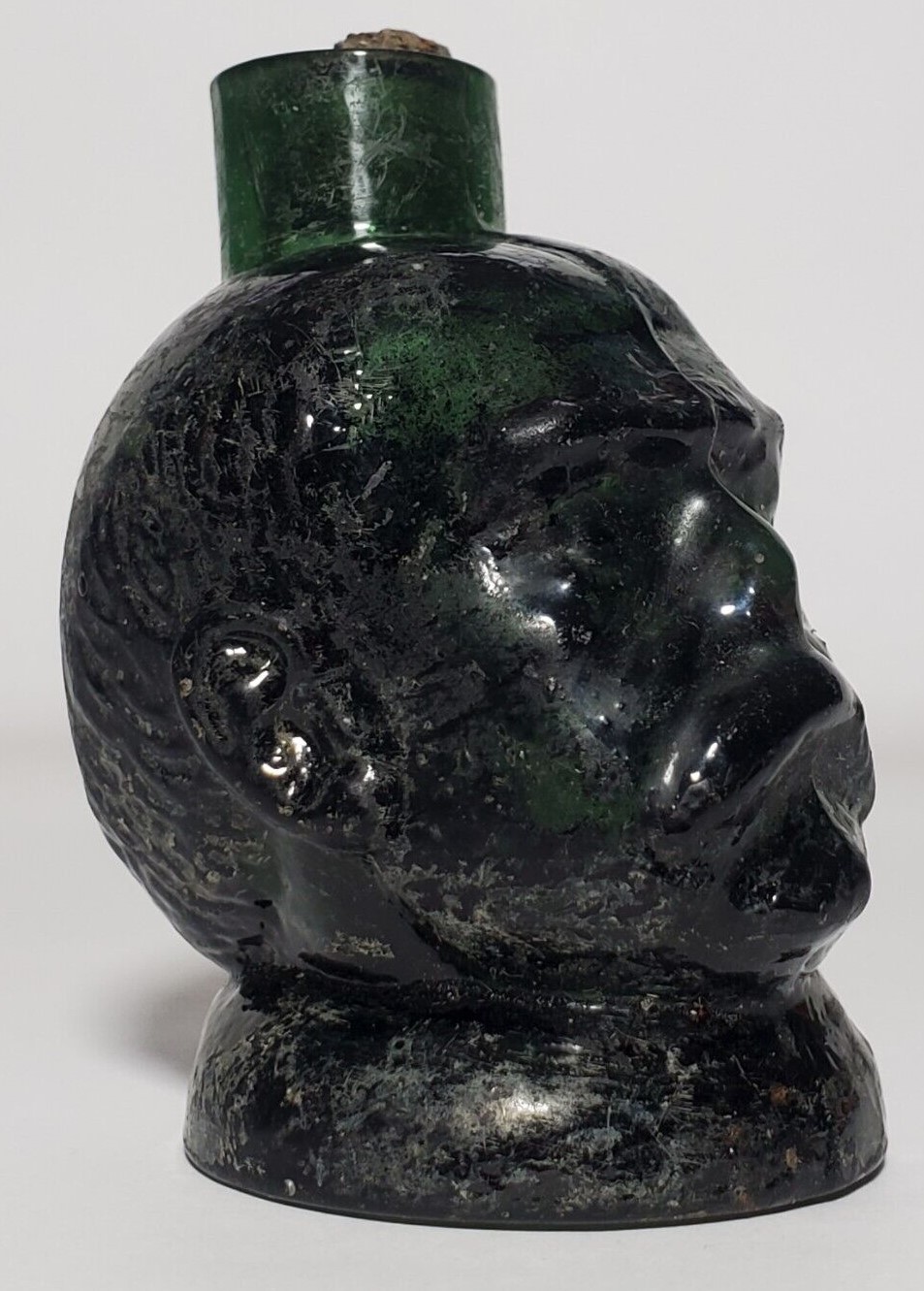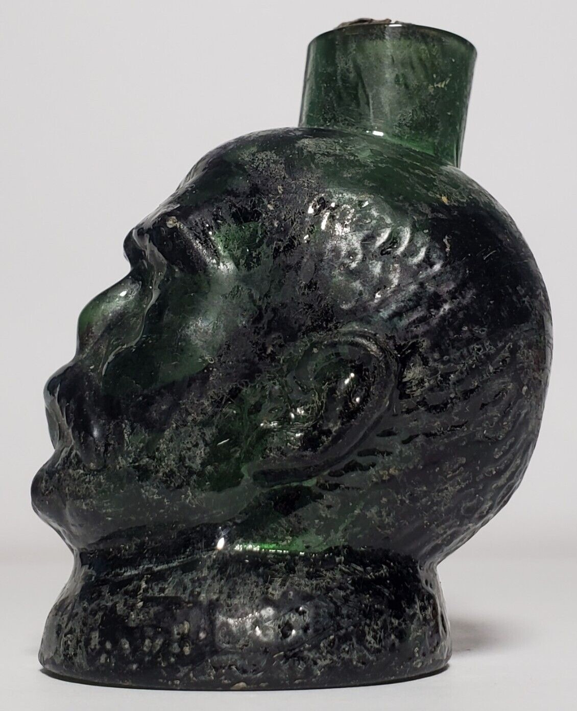 This glass ink bottle in the form of a man’s head was made in Russia.