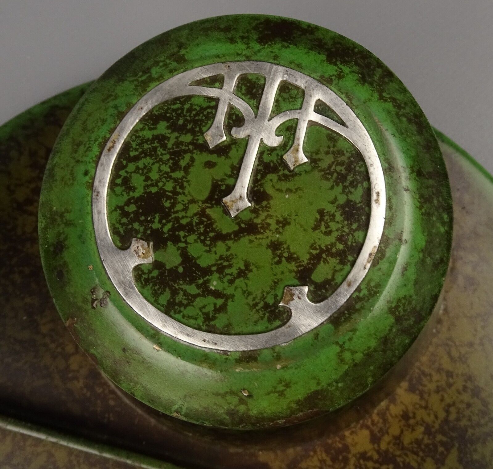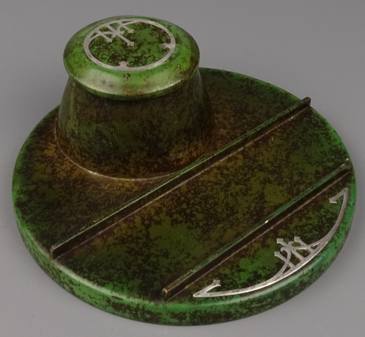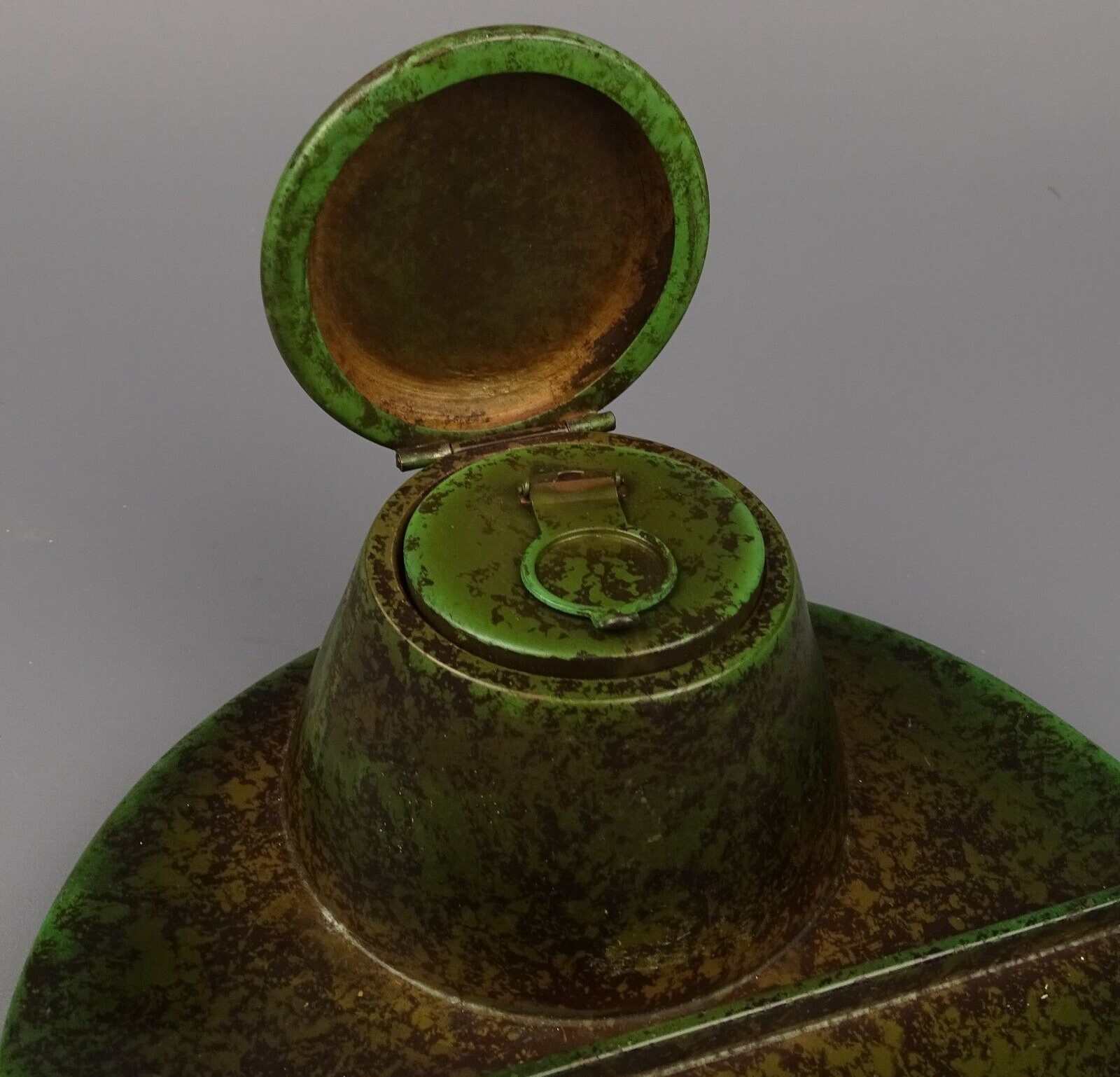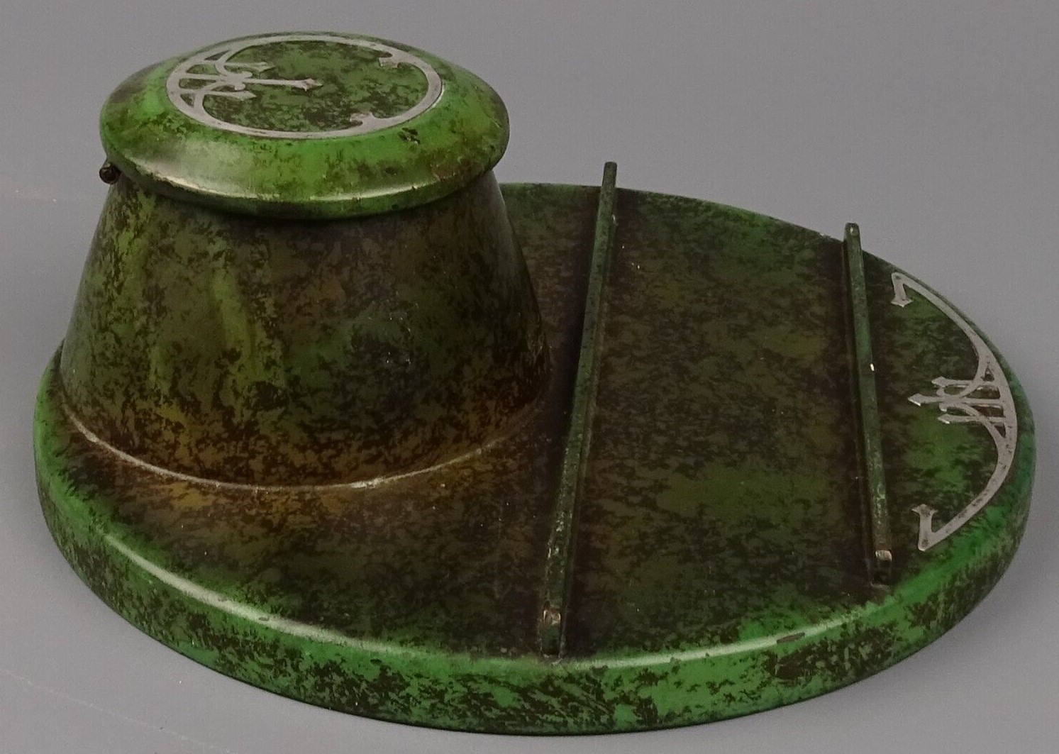 Heintz sterling on bronze inkwell and blotter in a mottled green finish. The inkwell is numbered #1144.