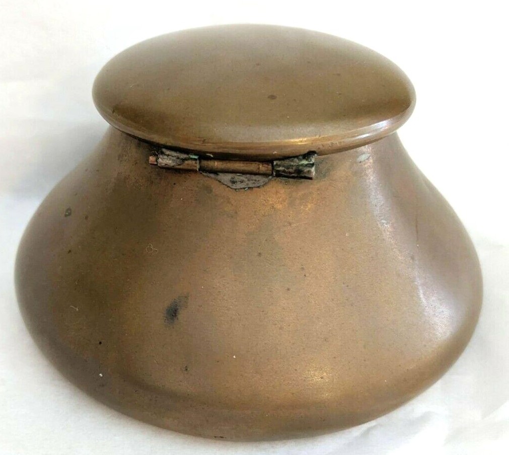 The Heintz Art Metal Shop was based in Buffalo, New York. In 1912, Otto L. Heintz patented his process for applying sterling silver to bronze without solder, and the results can be seen on this inkwell.
