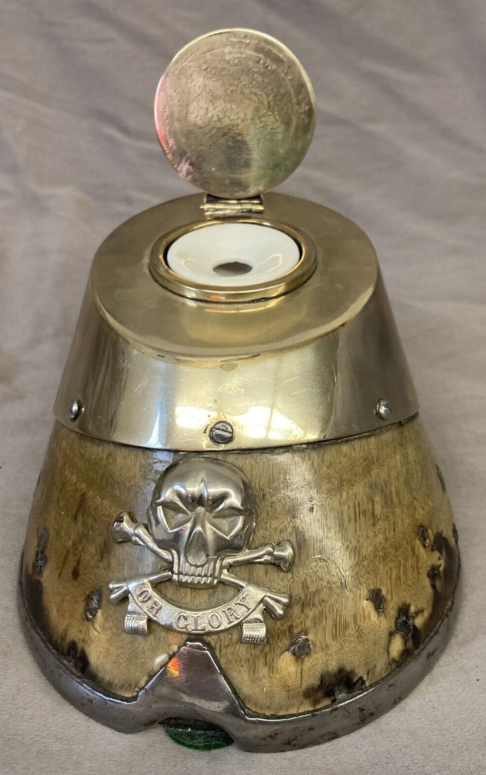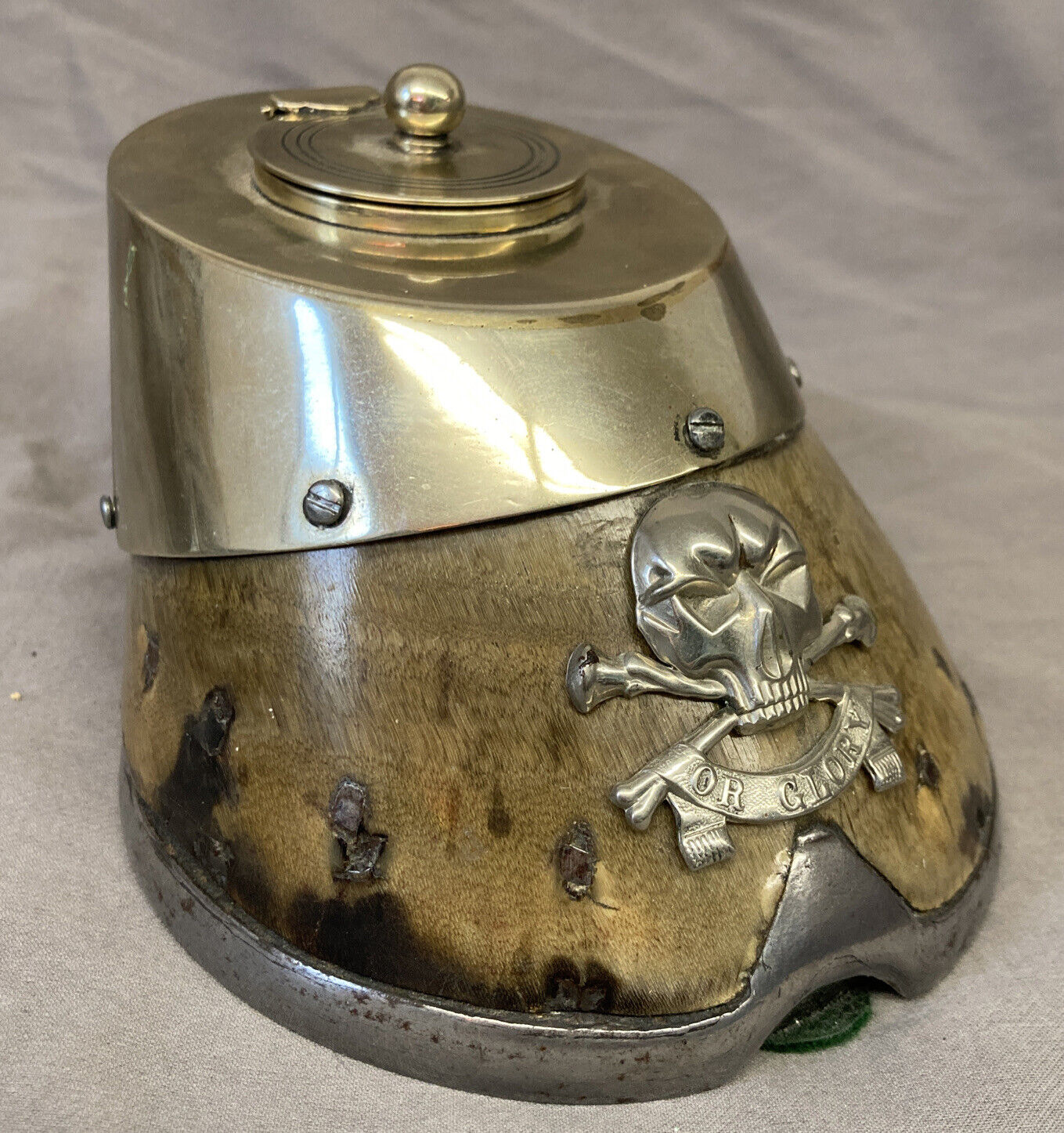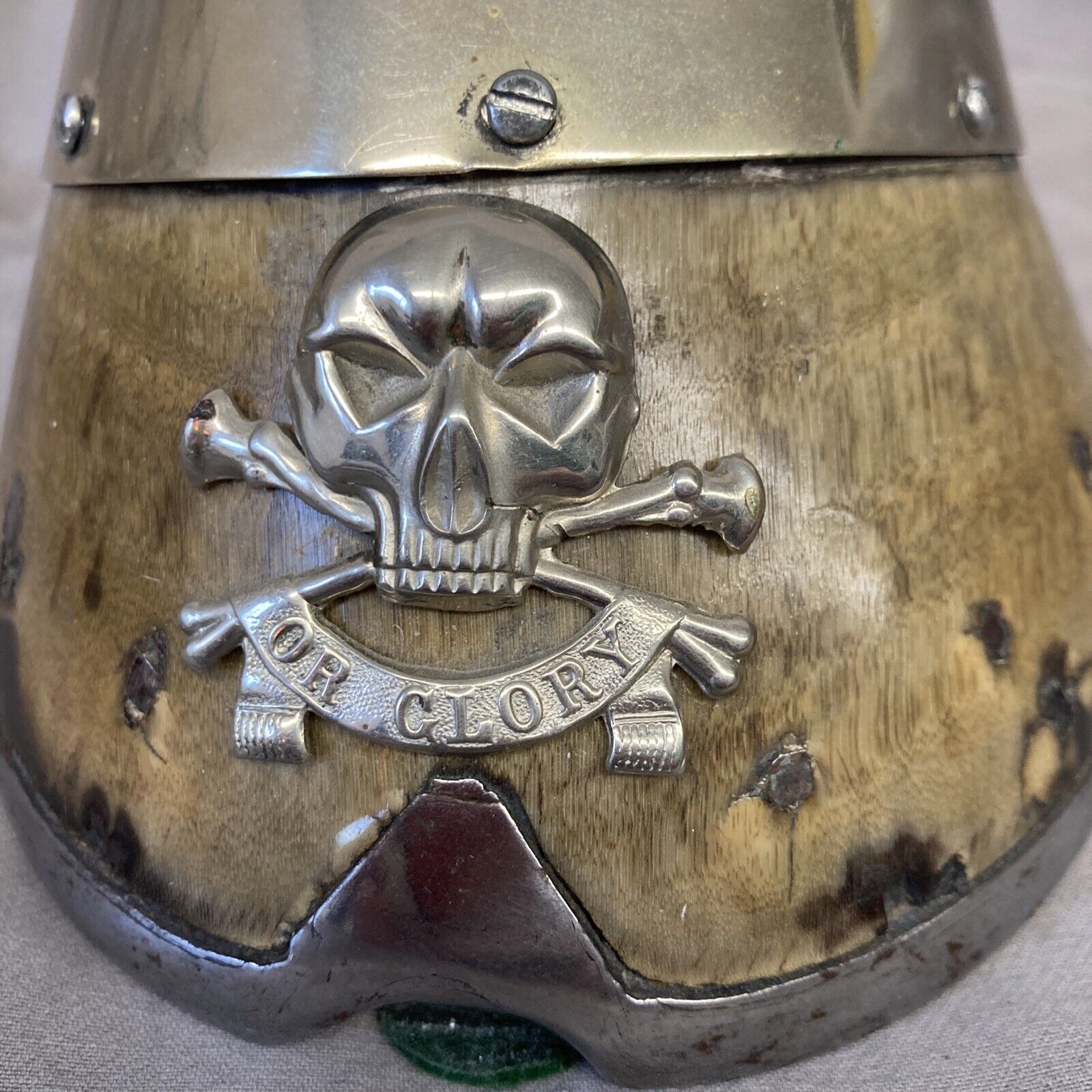 The 17th Lancers (Duke of Cambridge’s Own) was a cavalry regiment of the British Army, raised in 1759 and notable for its participation in the Charge of the Light Brigade during the Crimean War. The regiment was amalgamated with the 21st Lancers to form the 17th/21st Lancers in 1922. The insignia for the 17th Lancers (Death or Glory) is displayed on this hoof.