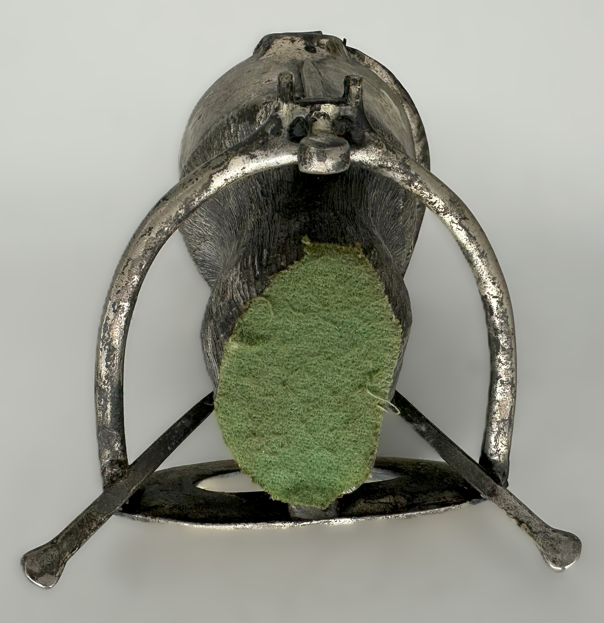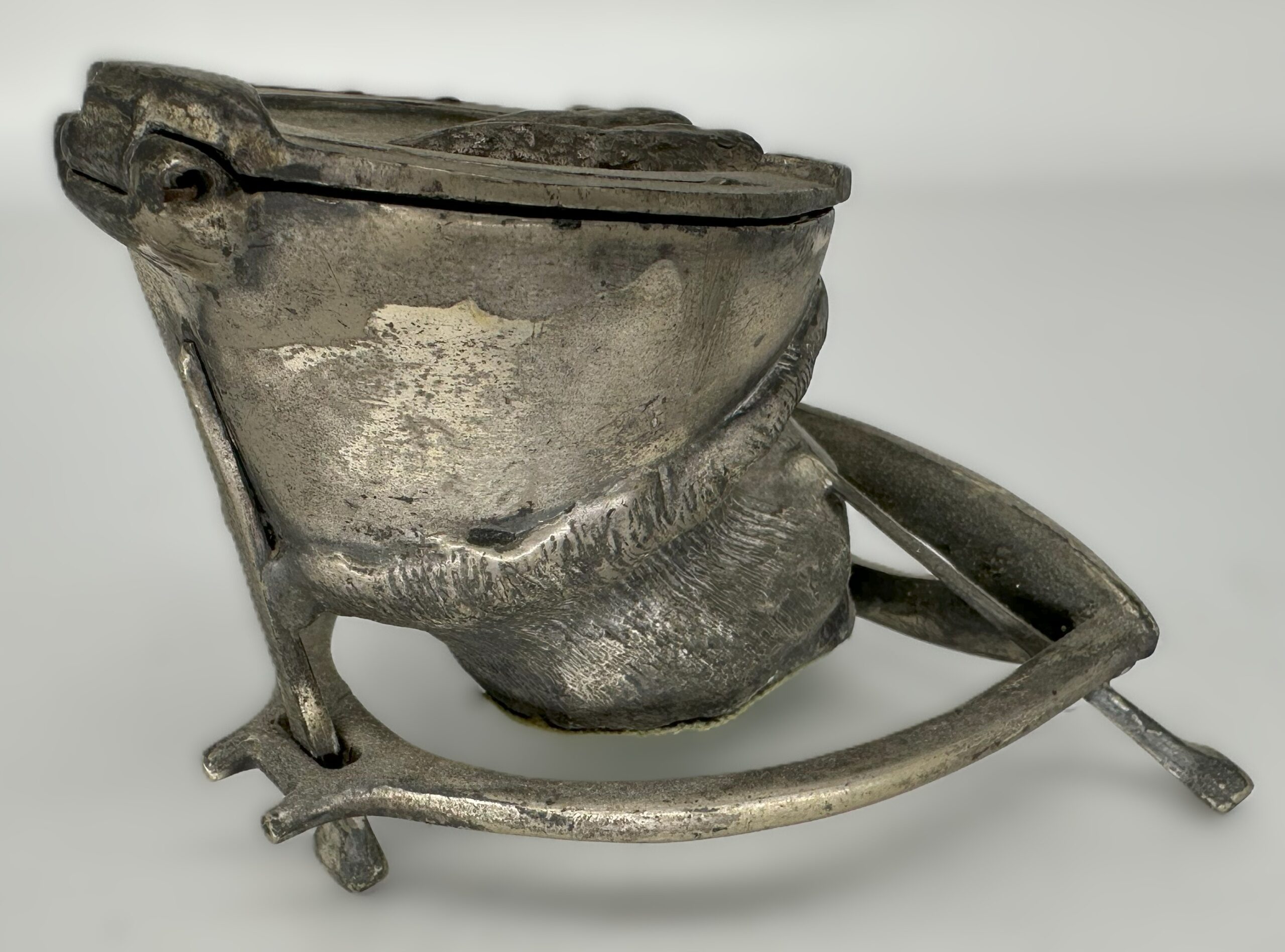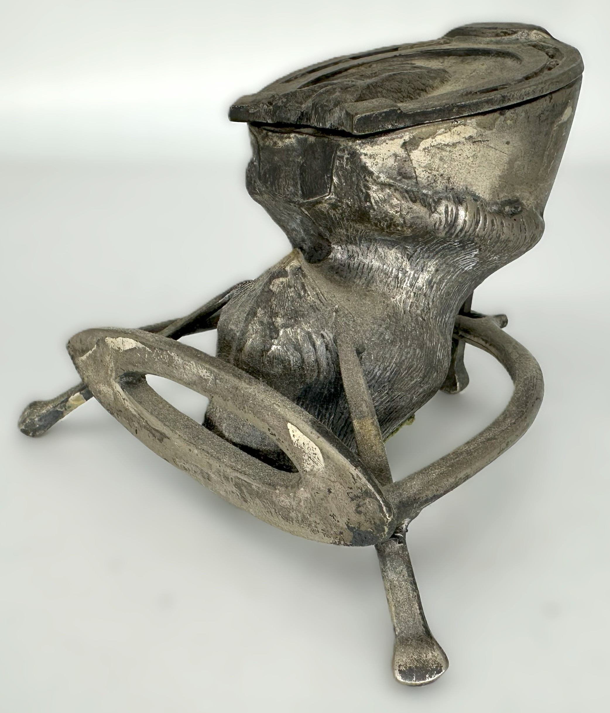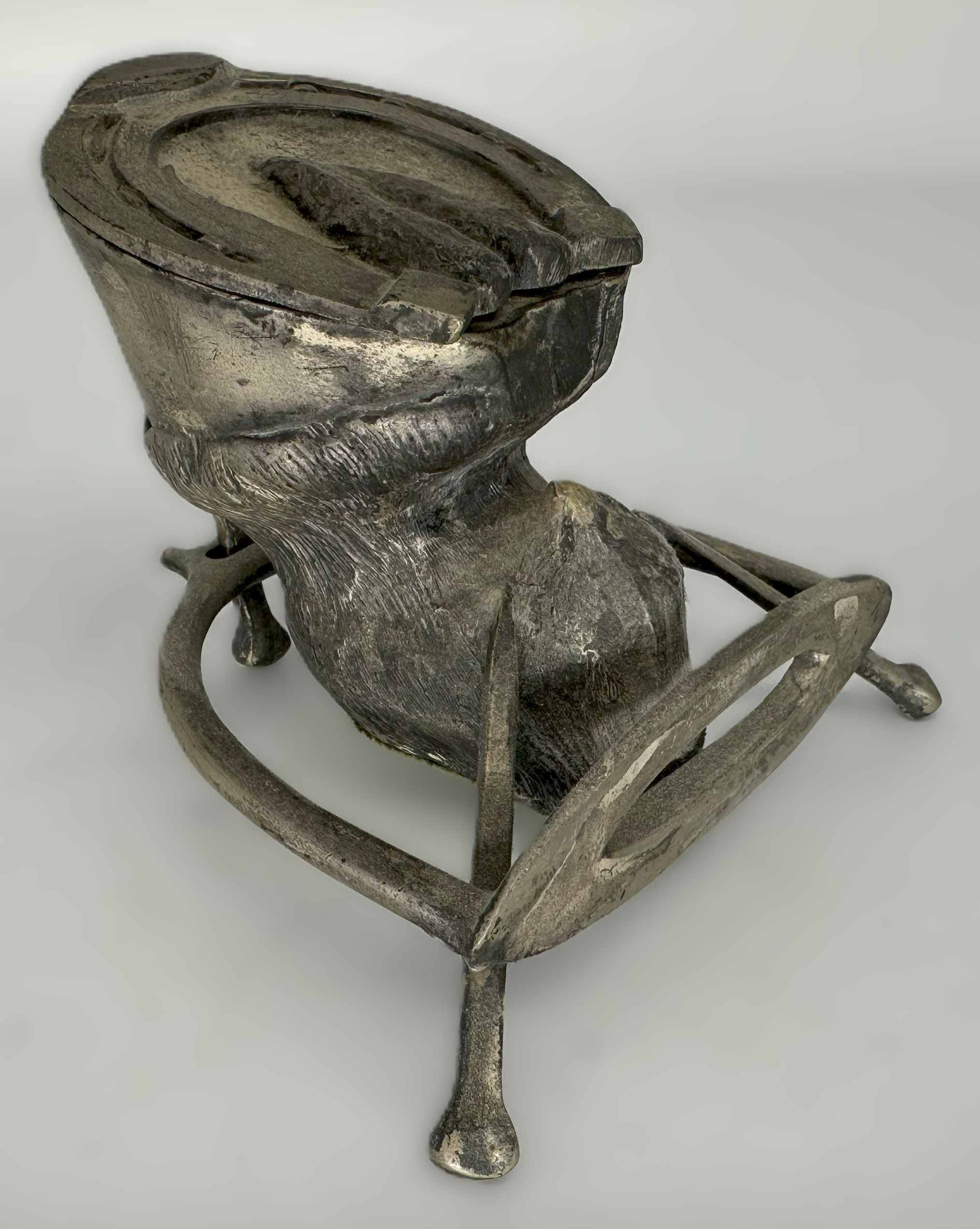 - The Hoof: It is a metal casting of a horse’s hoof, detailed to resemble the texture and contours of a real hoof. The bottom of the horse-shoed hoof is hinged and opens to reveal the glass inkwell insert.