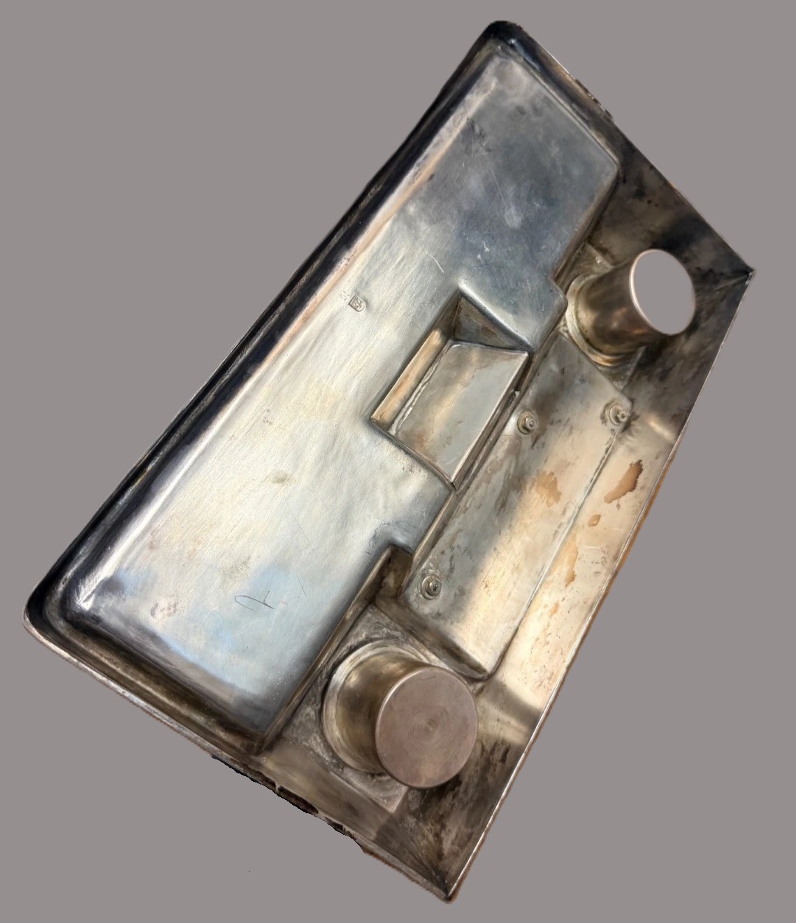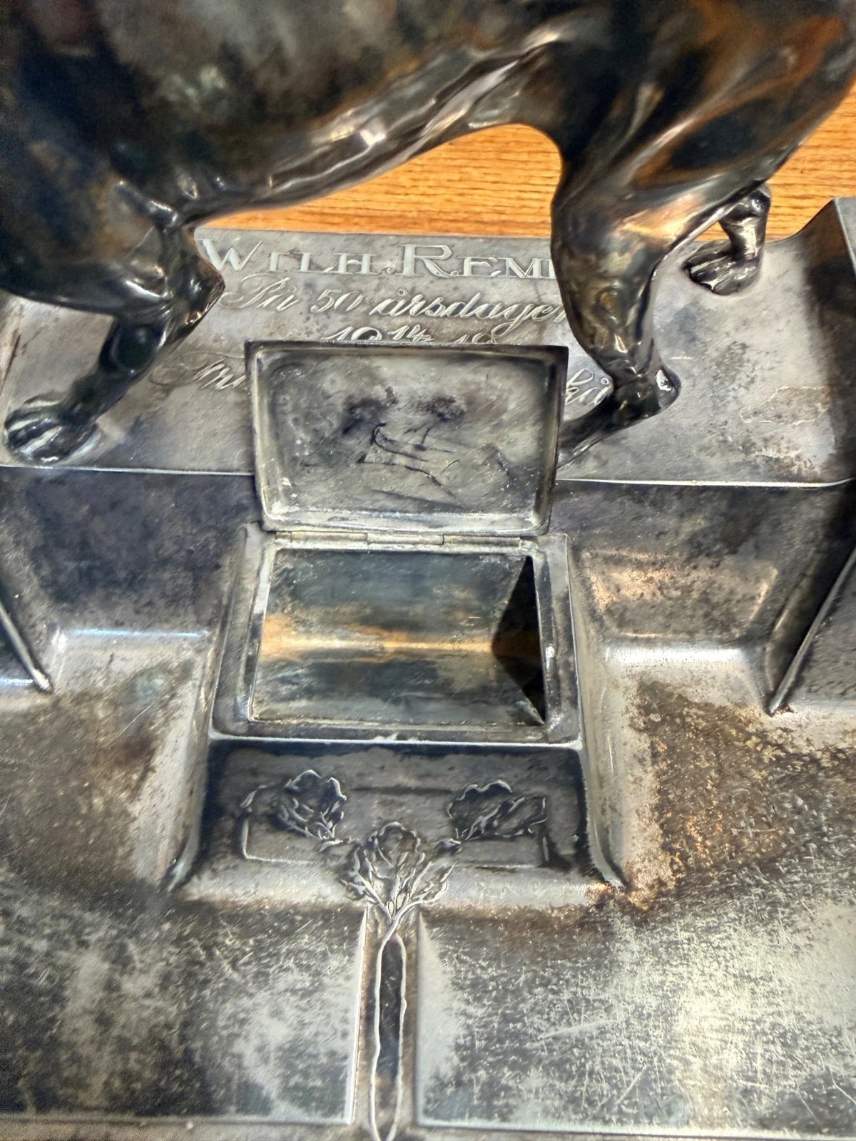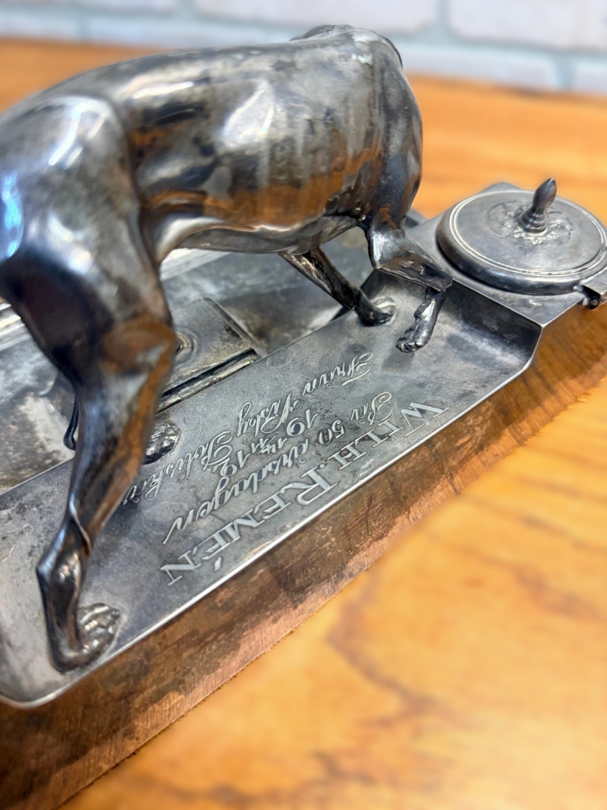 This specific alloy was designed to be food-safe, durable, and capable of maintaining a “warm silver glow” without the heavy tarnishing of traditional pewter. Given the appearance of this piece, it was likely silver-plated over the Kayserzinn base to give it an even more luxurious finish, a common practice for their high-end desk sets.