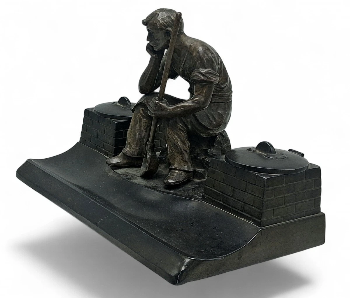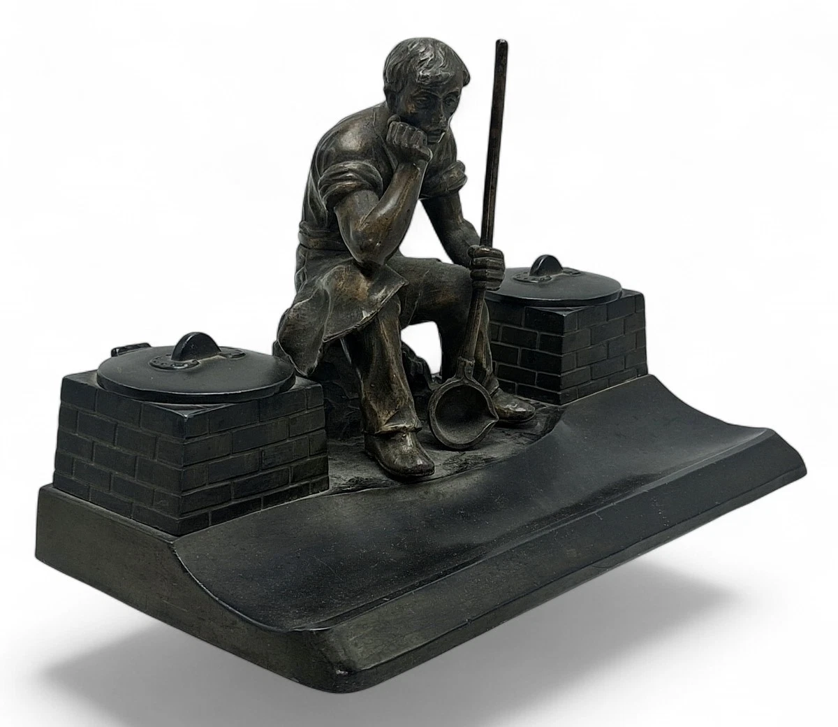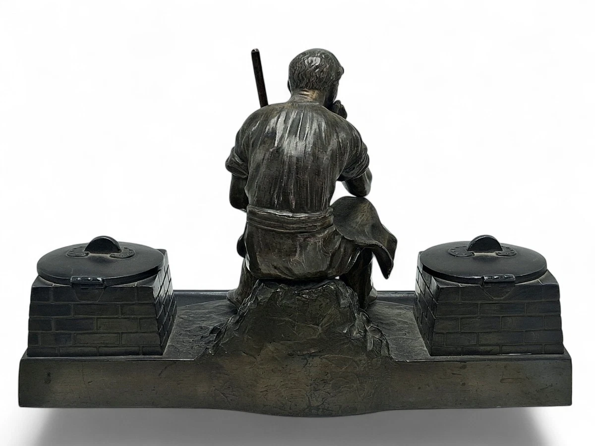 This is a nice example of Industrial Romanticism, a style that gained significant popularity in Germany between 1900 and 1920. These pieces were often produced in the industrial hubs of Saxony or Bavaria and were prized as desk accessories for engineers, factory owners, or metallurgists to celebrate the “dignity of labor.”