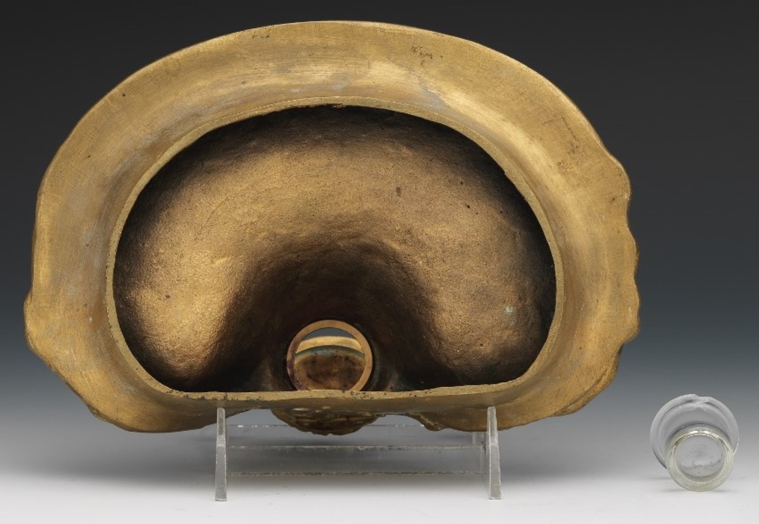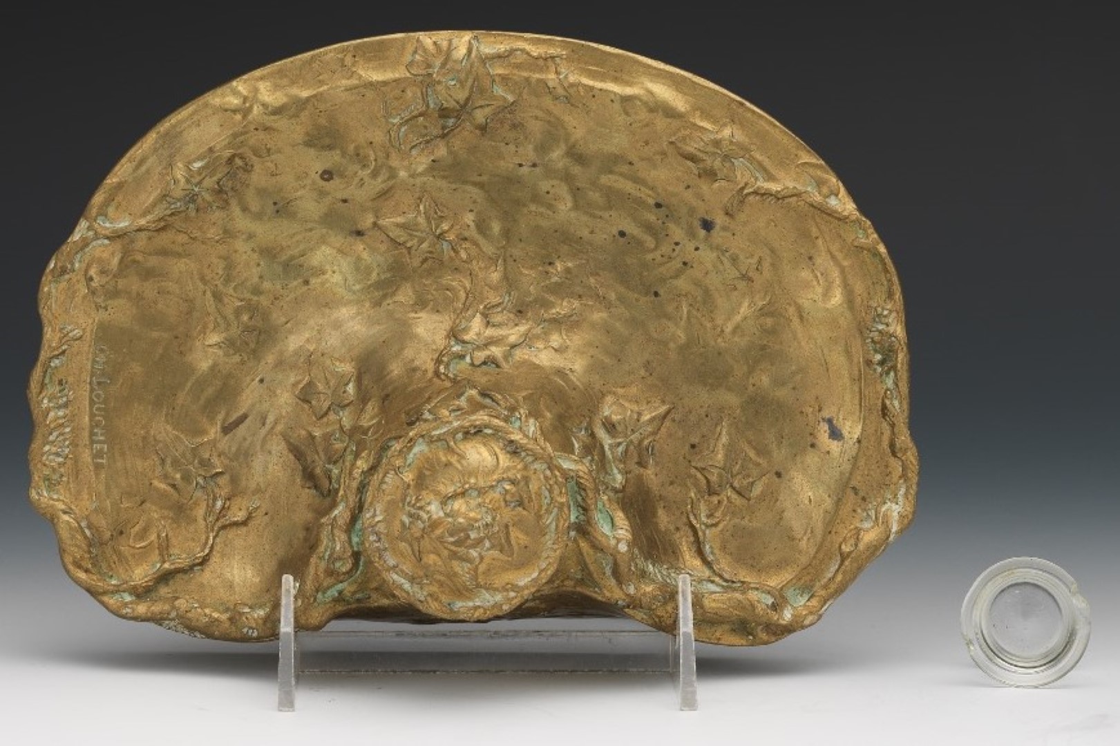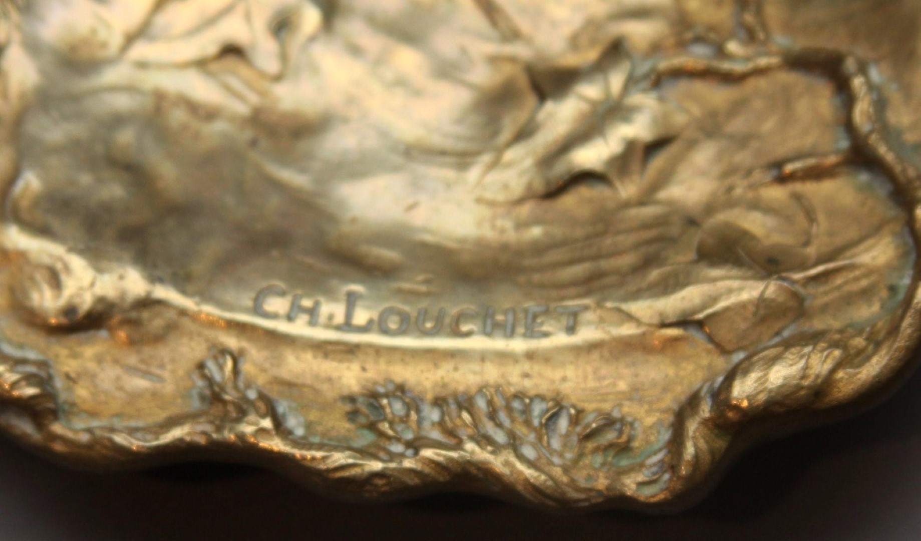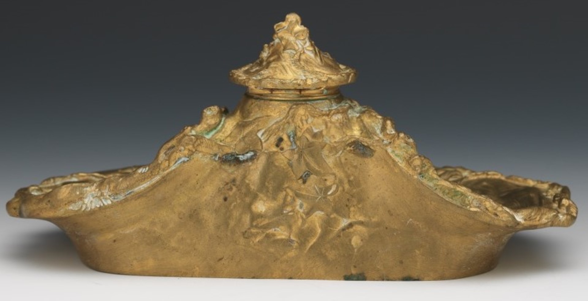 Gilt-bronze inkstand cast as an ivy-covered tree stump. Signed “CH. LOUCHET”. (Charles Louchet, 1854-1936, French)