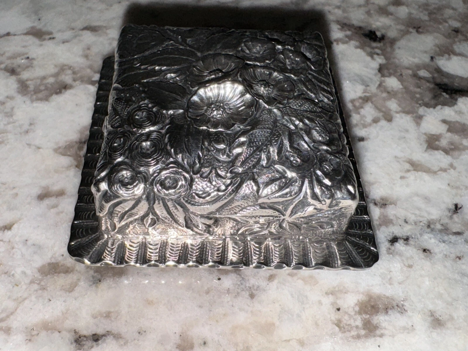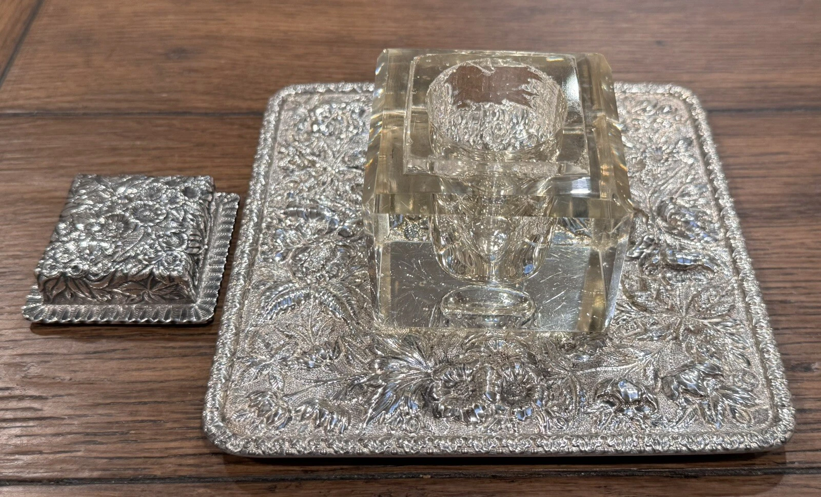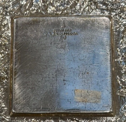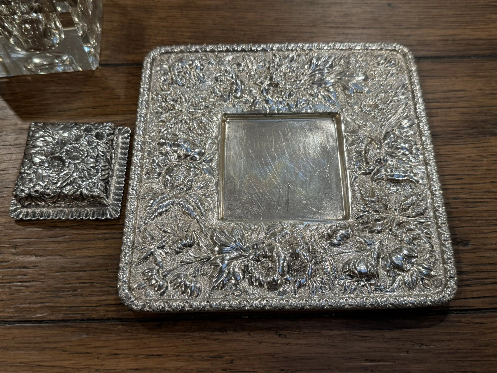 - Overall Form: This is a single desk accessory crafted in sterling silver in a square form.