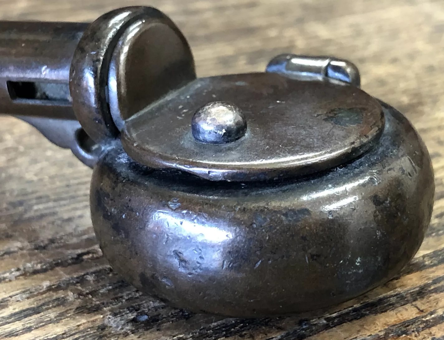 On one side, a bulbous, lidded reservoir holds the ink. Unlike the elaborate process of grinding solid sumi ink on an inkstone, this yatate offered a more convenient solution for those on the move. The reservoir would have been filled with a supply of liquid ink, often thickened to prevent spills. The interior likely contained a wad of cotton or silk fibers. These absorbent materials acted like a sponge, soaking up the ink to prevent sloshing and control the flow when the brush was dipped. They also helped to slow down the ink’s evaporation, ensuring it remained usable for longer.