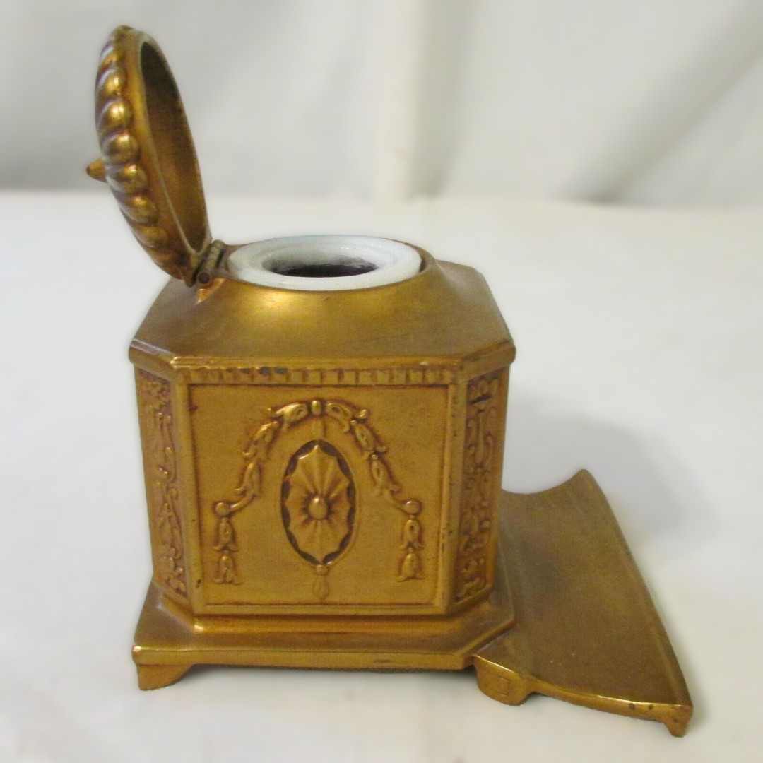 - The inkwell is a part of a set of desktop items which included a letter holder, rocker blotter, and stamp box.