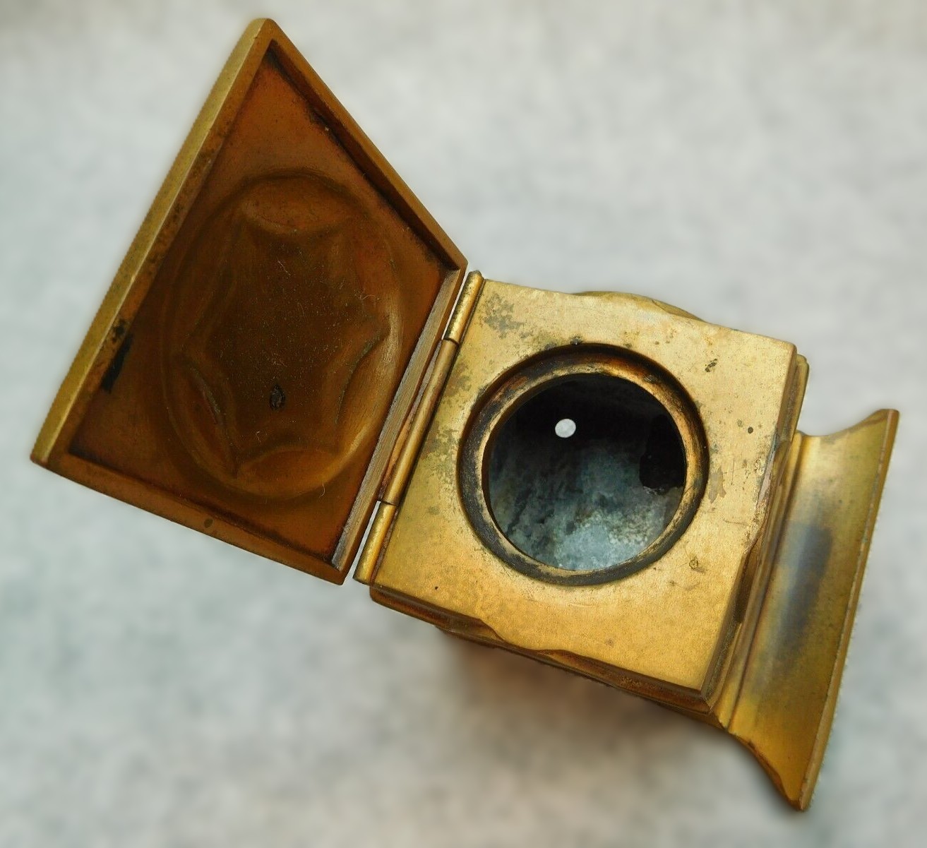 - Form and Layout: This is a single inkwell with a place for pens in the front.