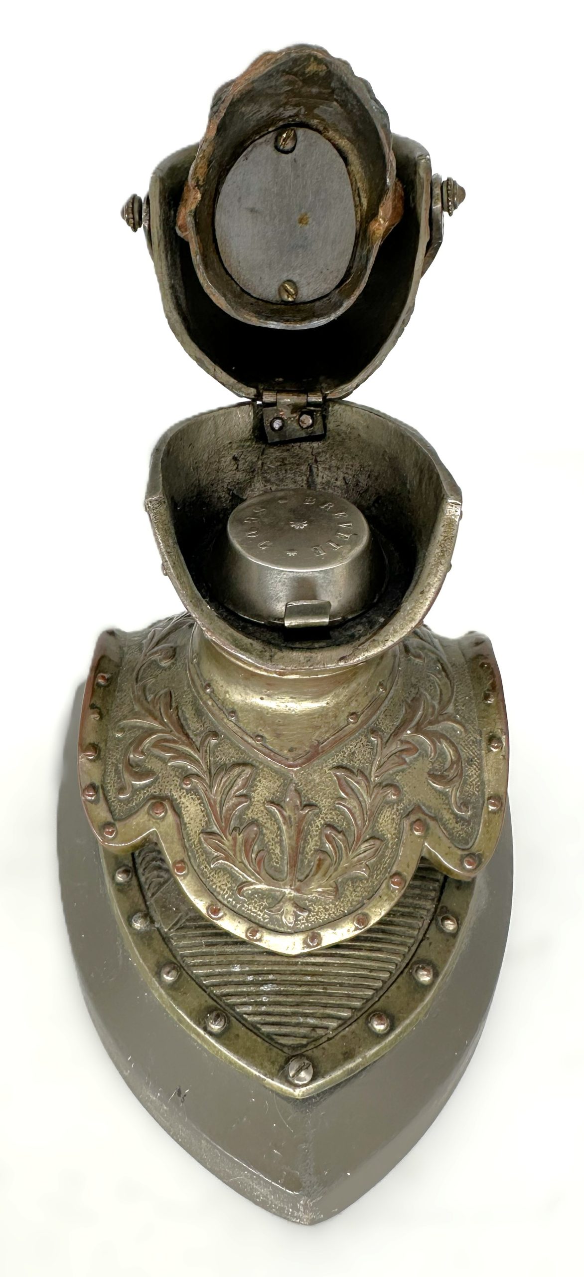 The mechanism—a “hidden” inkwell inside a historical bust—was a peak Victorian-era novelty. These were often sold as souvenirs or high-end desk gifts in Parisian boutiques.