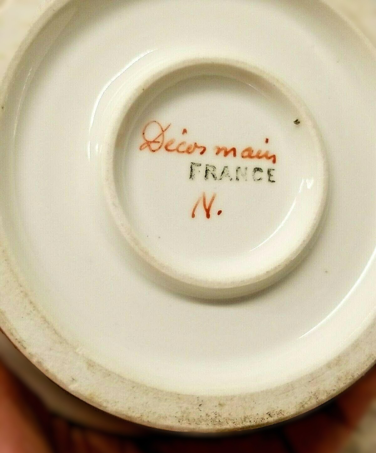 Its mark consists of the handwritten red script “Décor main” (Hand-decorated), “FRANCE,” and a prominent capital “N.” with a period.