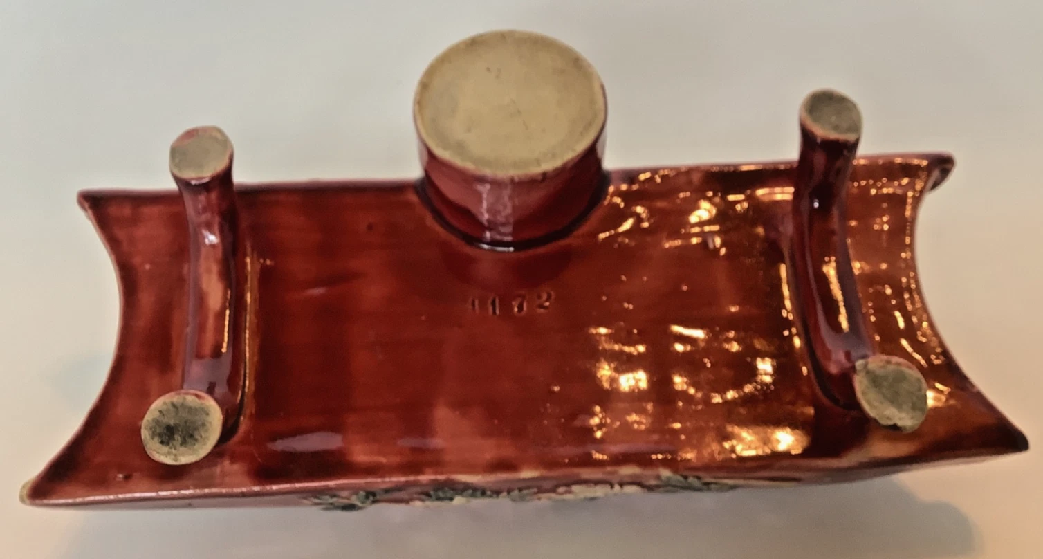 - The Companion Piece: The “Crocodile (or Alligator) Riding a Bicycle”, also documented in Inkipedia, is a “sister” piece to this set. See: Majolica Inkstand – Crocodile Riding a Bicycle – The Society of Inkwell Collectors (SOIC)