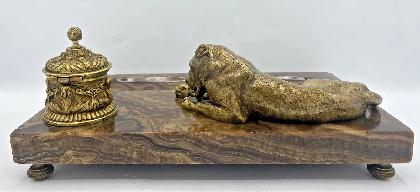 Marble Inkstand with Gilded Bronze Lioness