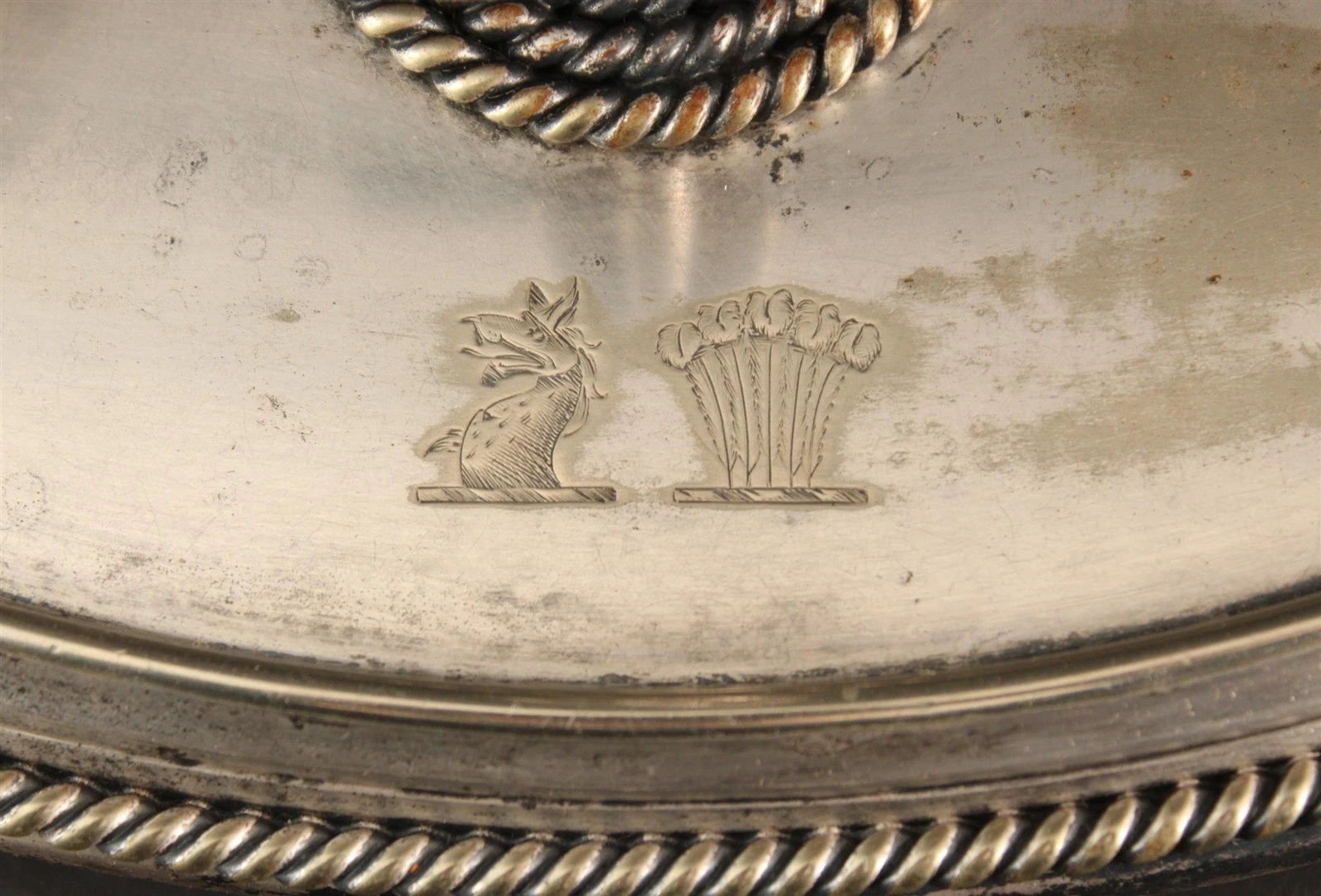 - Armorial Connection: The presence of two distinct crests suggests the piece may have belonged to a couple, where the two crests represent their respective family lines (a marital or impaled coat of arms is sometimes indicated this way), or it could simply be two separate, decorative motifs.