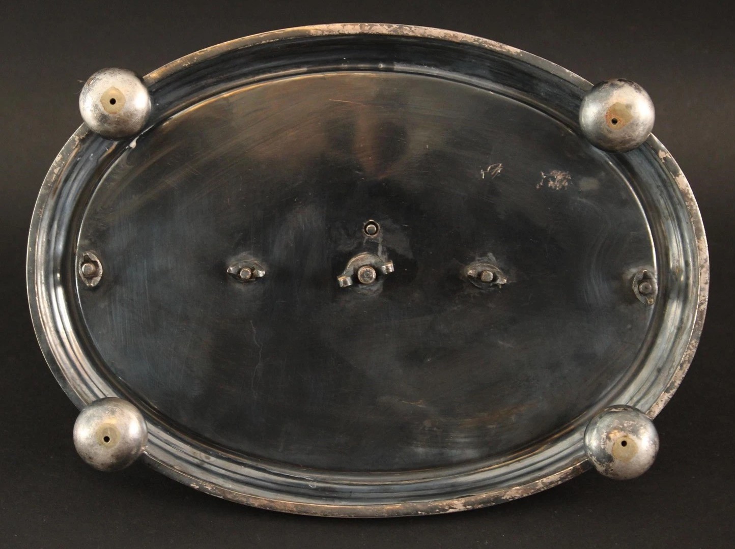 - The Tray: Oval shape with a deep, footed edge defined by a detailed twisted-rope border. It stands on four ball-shaped feet.