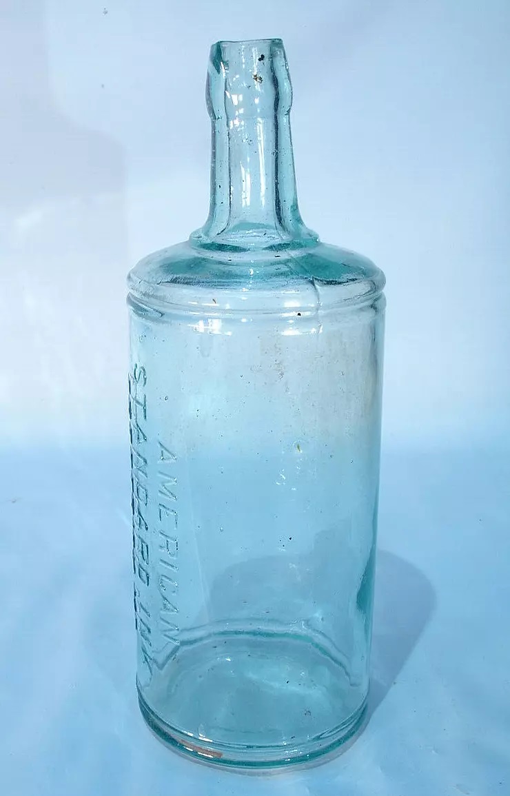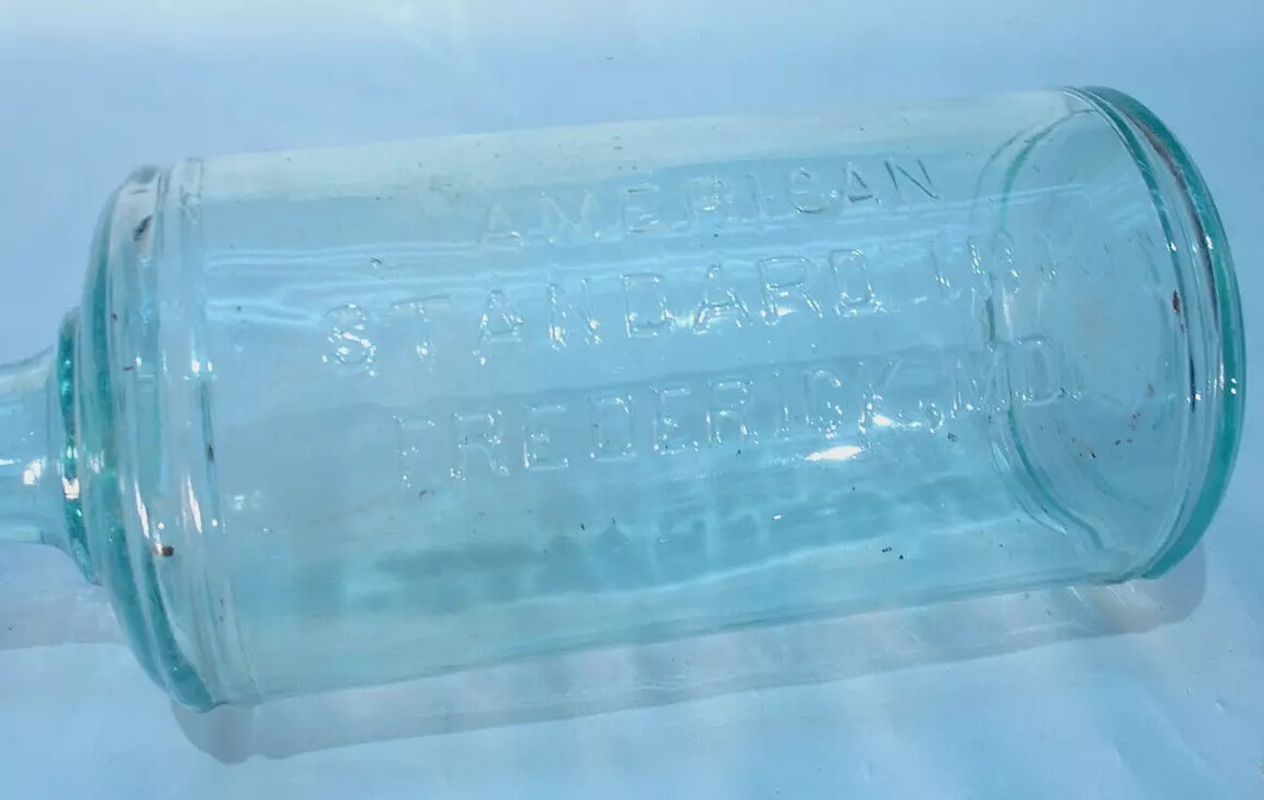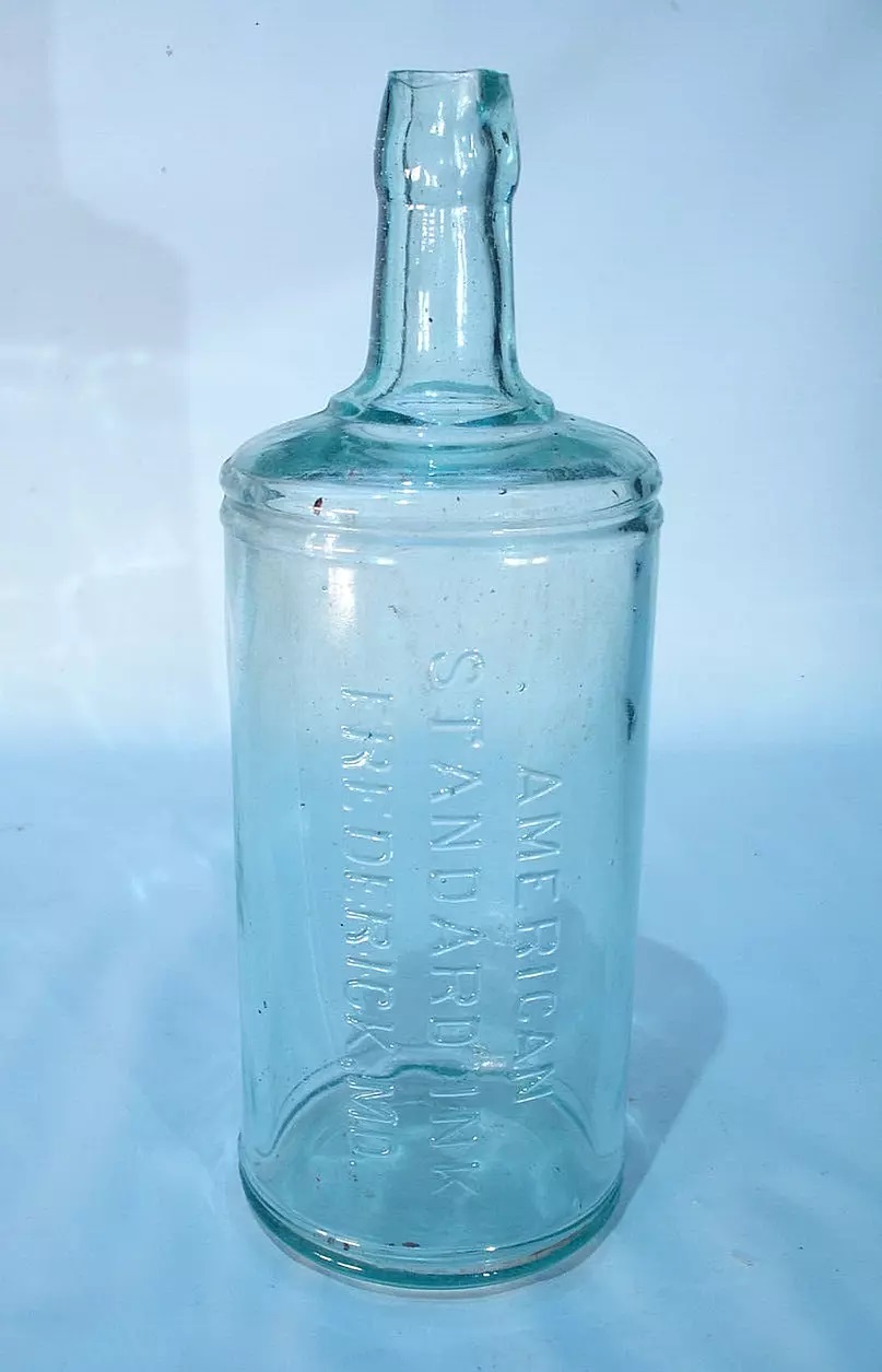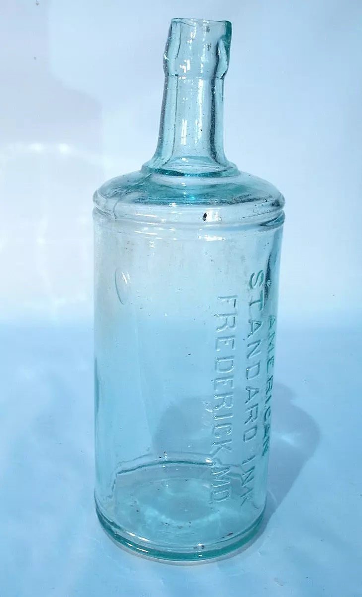 An aqua blue glass master ink embossed “AMERICAN STANDARD INK – FREDERICK, MD.”