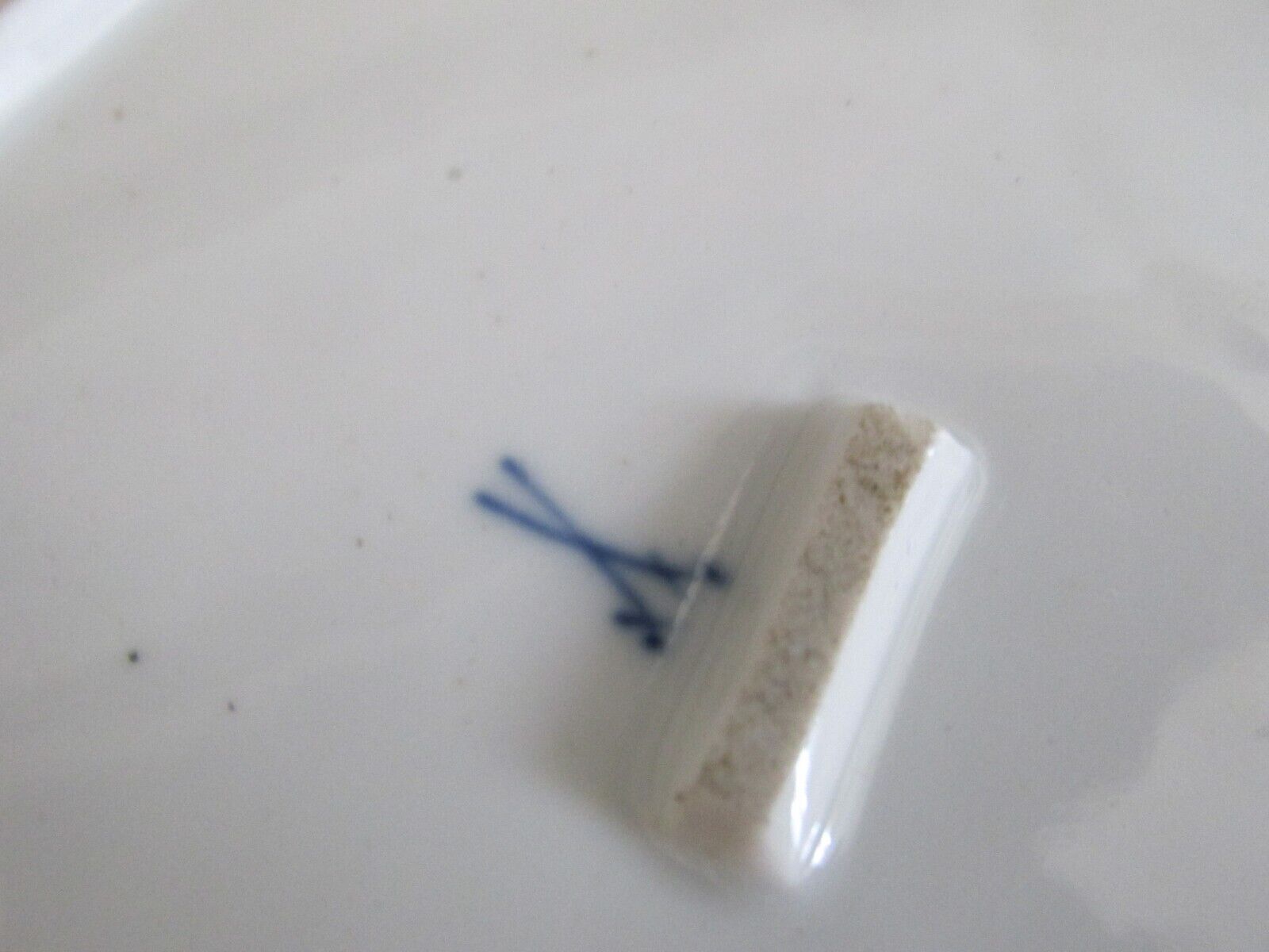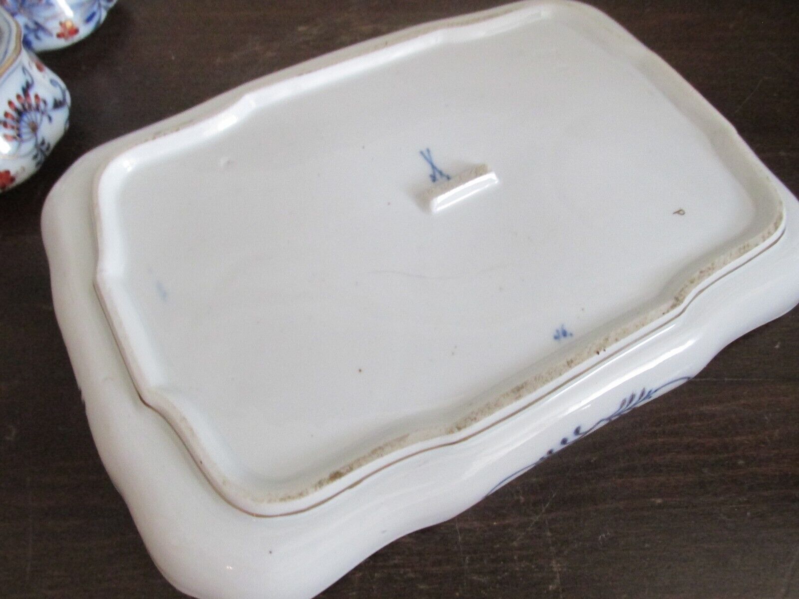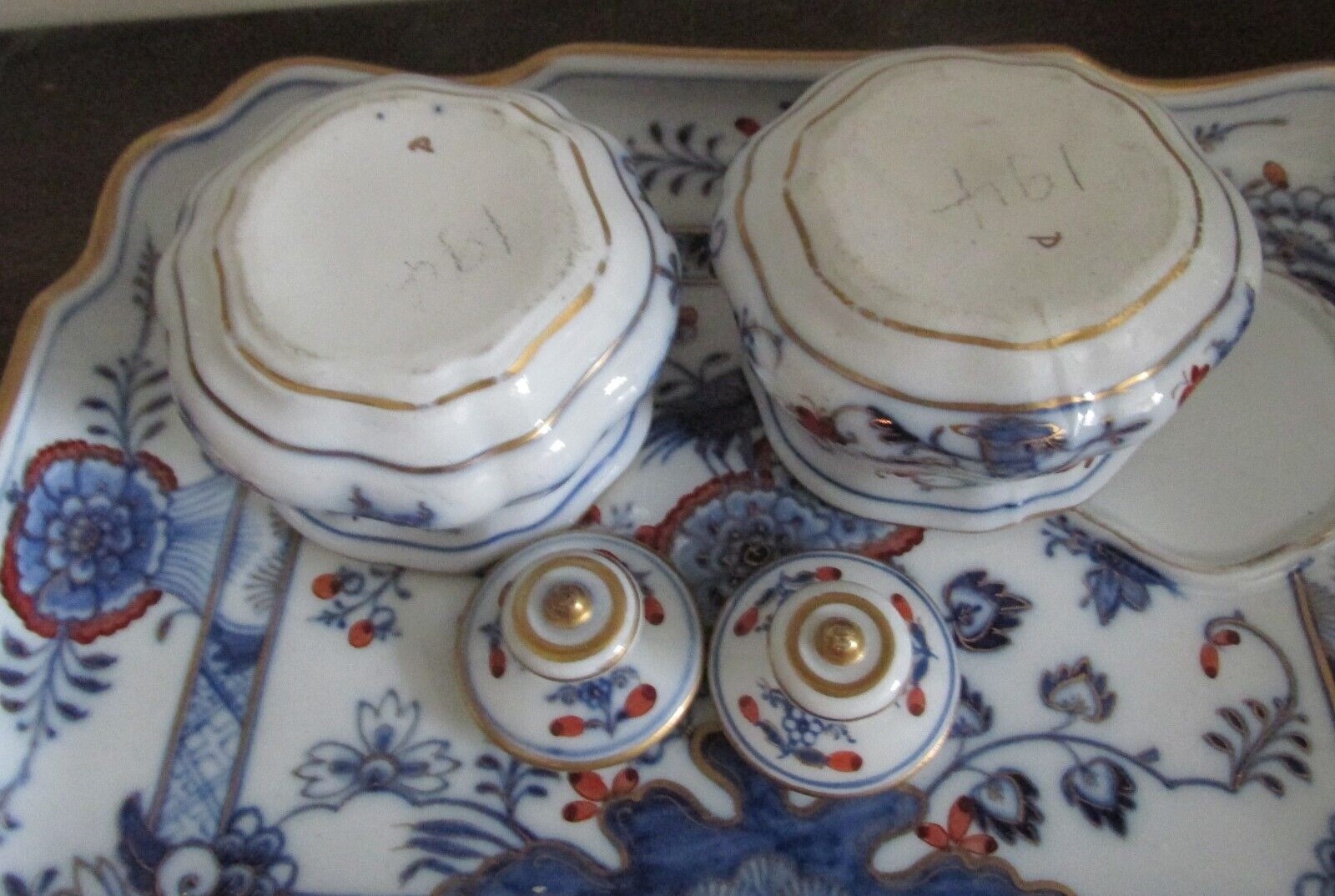 Meissen Germany porcelain inkstand – hand painted in oranges, blues, and gold.