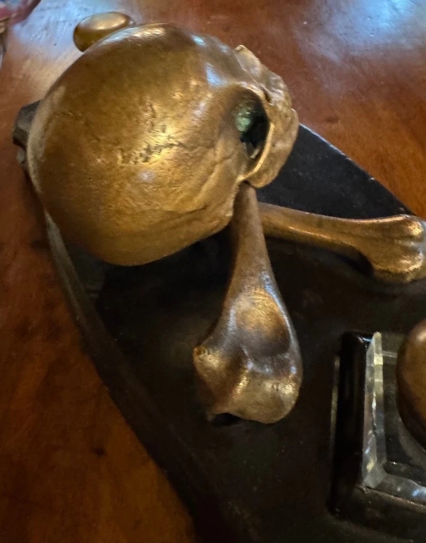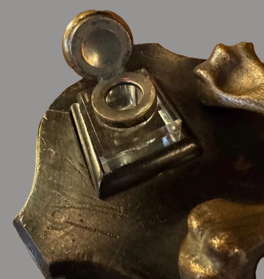 - Masonic Influence: This inkstand may reflect Masonic iconography. The skull and bones are central to the Chamber of Reflection, where a candidate would sit alone to contemplate their mortality before initiation. An inkstand of this quality could easily have graced a Lodge’s secretary desk or the private study of a high-ranking Freemason.
