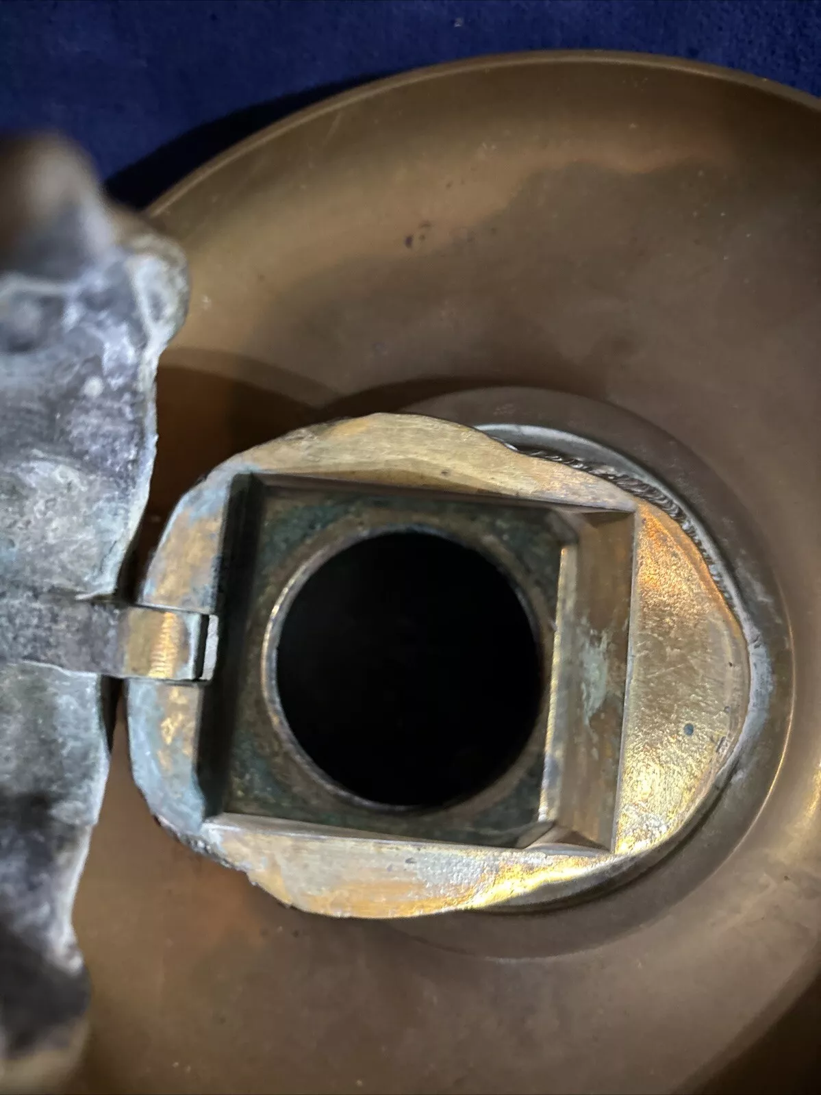 - Base: The inkwell features a simple, circular, shallow dish-like base.