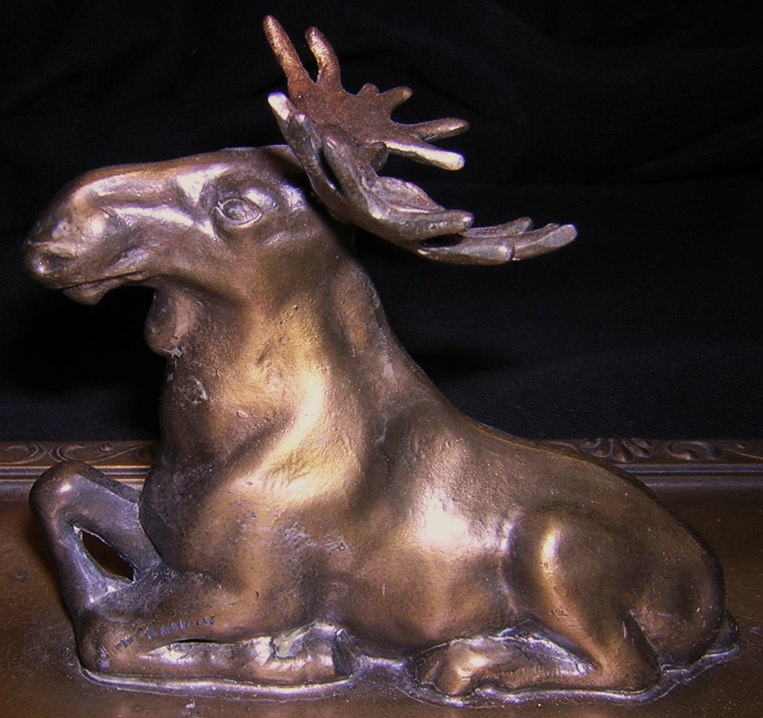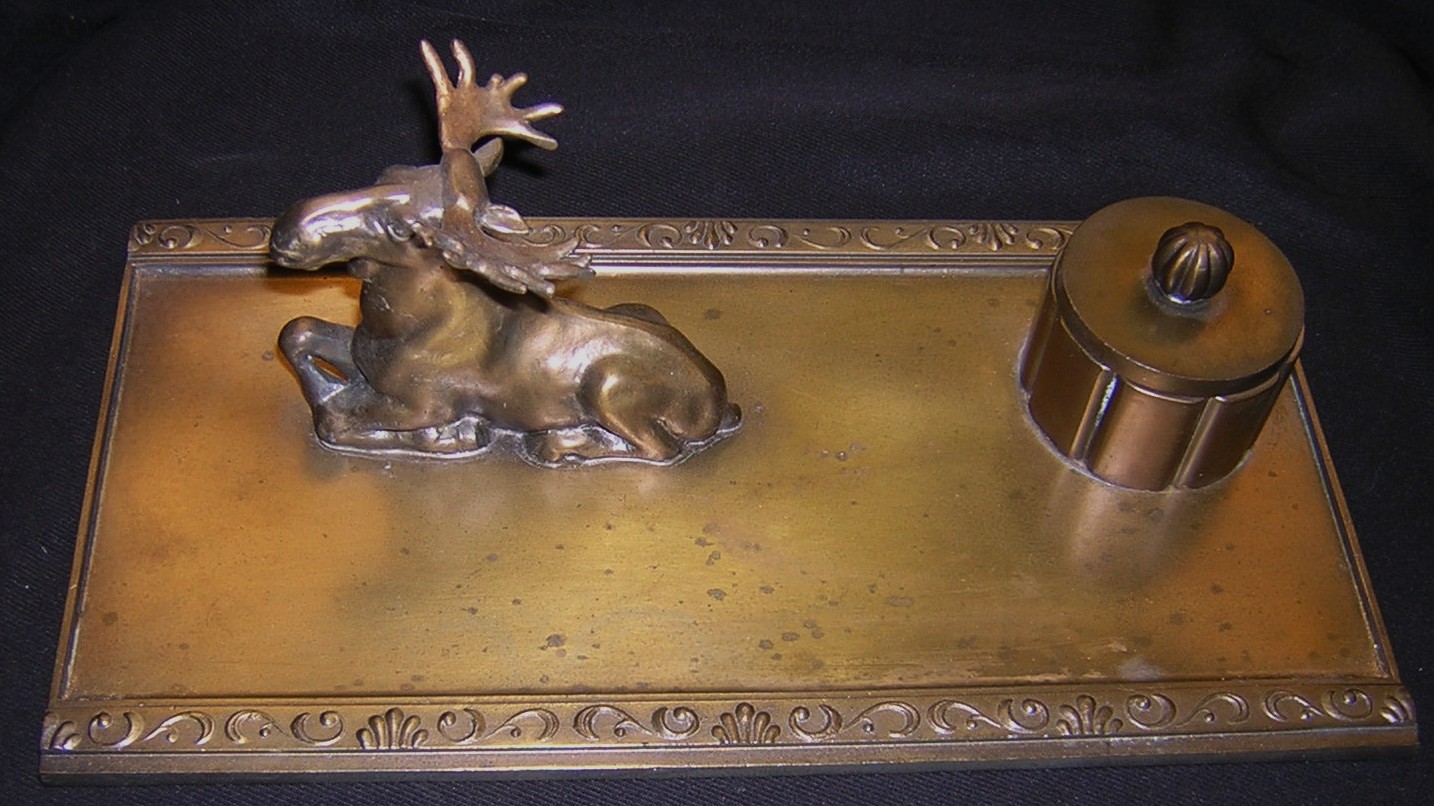 Bronze Moose Inkstand – Marked on bottom: St Järn Metall