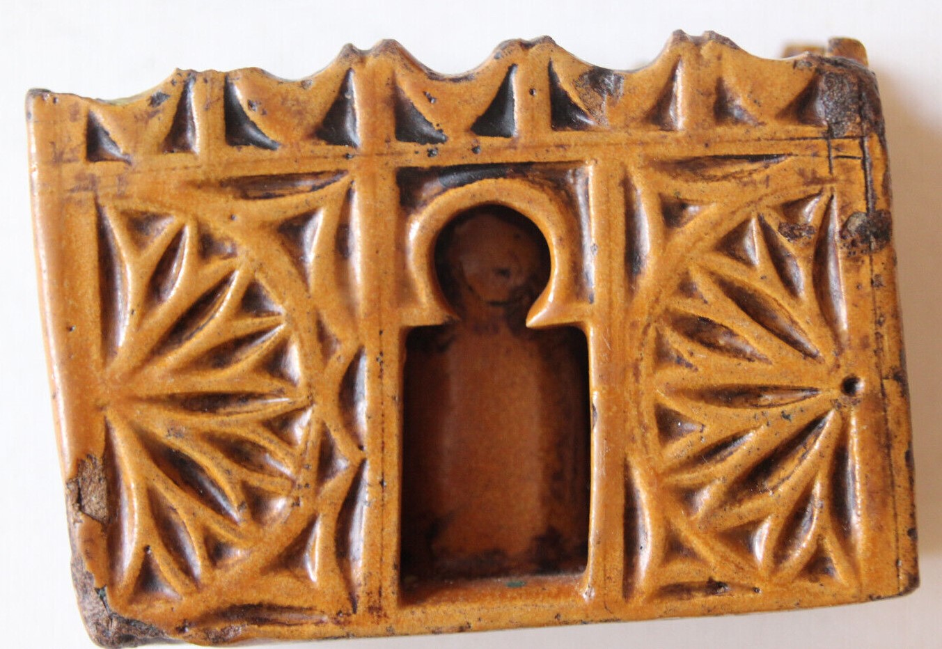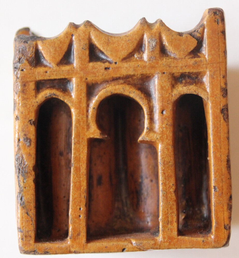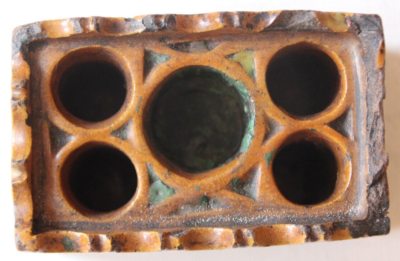 Moroccan inkwell in glazed terracotta with five receptacles for inks.