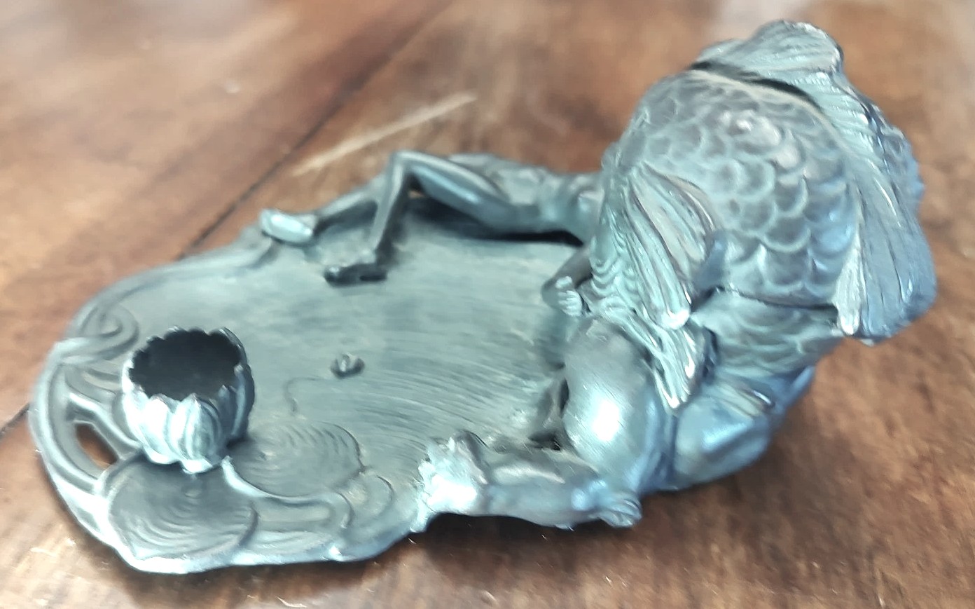 - Composition: The figures are arranged dynamically on a flat base that represents the sea or water. This flat area, molded with waves and a lotus plant, is an area for resting pens.